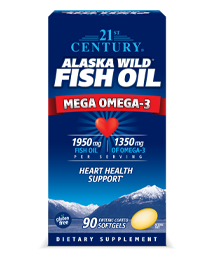 21st Century Alaska Wild Fish Oil has the best concentration of Mega Omega-3, naturally obtainable from fish oil. Mega Omega-3 fatty acids help maintain a healthy heart, joints, skin, memory and brain. This product comes from cold water deep sea fish that are not farm raised. 21st Century uses an exclusive process to preserve whole oil Mega Omega-3 concentrations. It's molecularly distilled and naturally stable to prevent rancidity.