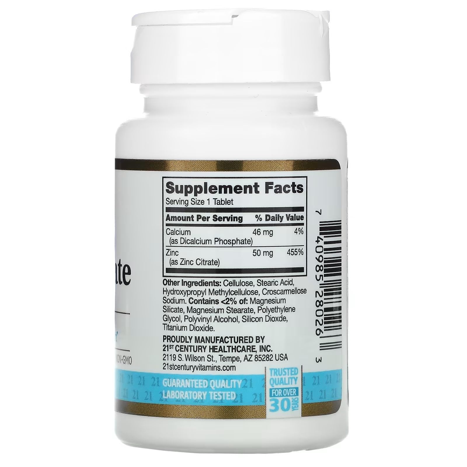 Pre-Order | Arrives in 5–10 Days – 21st Century HealthCare Zinc Citrate Tablets 50mg, 60 Count