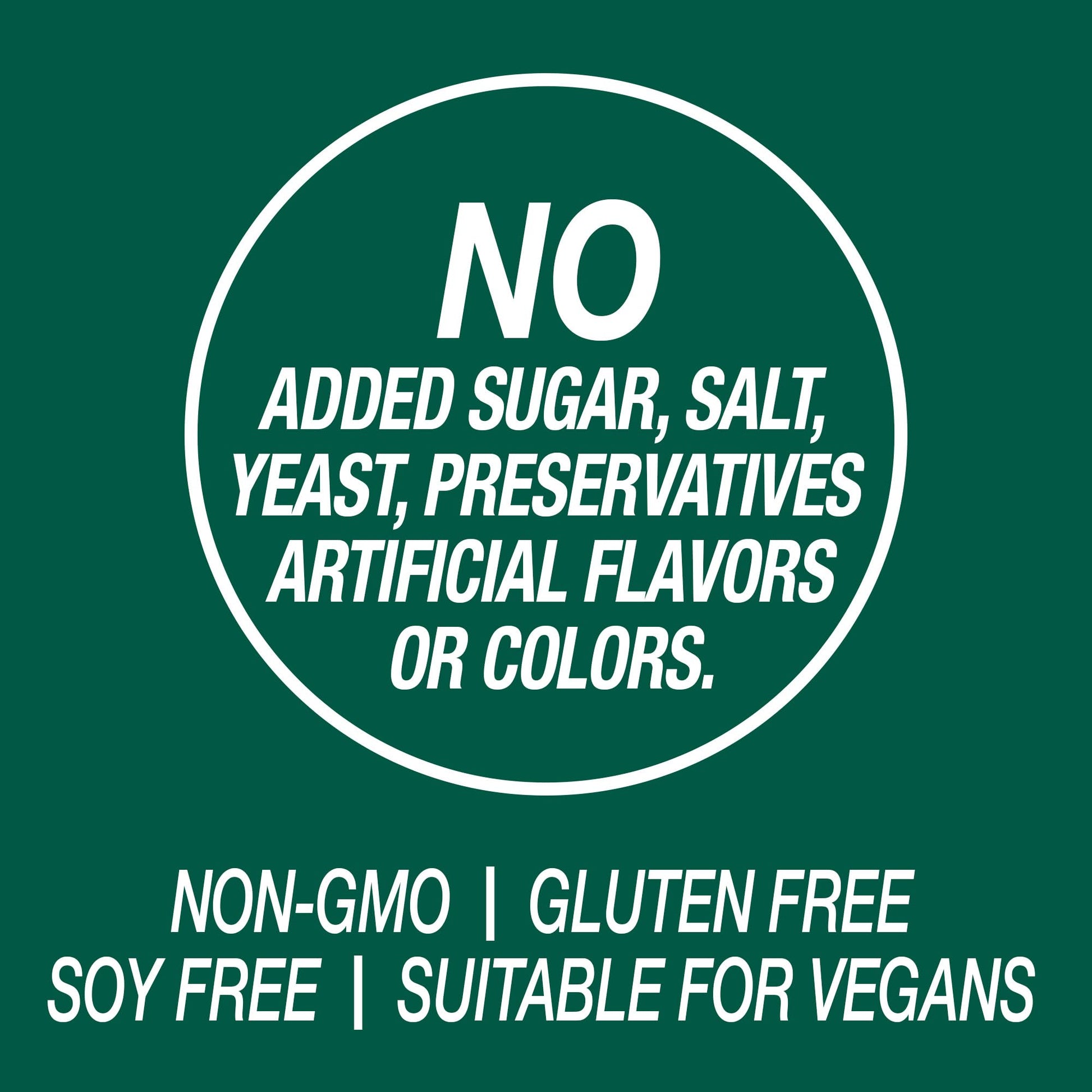 - NO ADDED: No added Sugar, Salt, Yeast, Preservatives, Artificial Flavors or Colors. Gluten Free. Soy Free. Suitable for Vegans. Non-GMO.