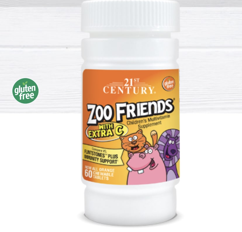 21ST Century® Zoo Friends® with Extra C is a children's multivitamin chewable with added vitamin C to support immune health.*