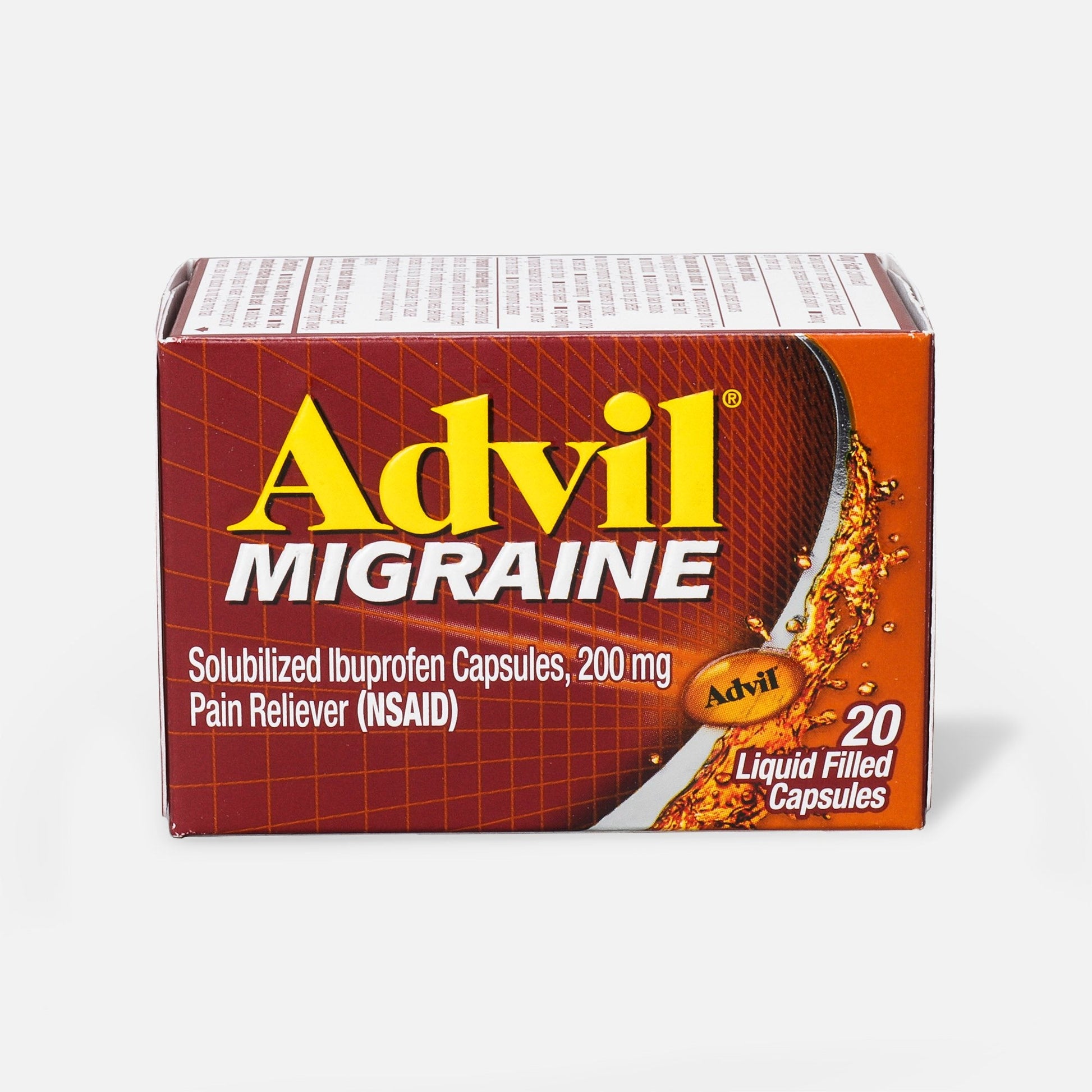 - Advil® Migraine may relieve Optimal migraine pain and related symptoms, like nausea, and sensitivity to light and sound*.