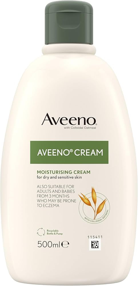 Aveeno® Cream is formulated with Colloidal Oatmeal to actively moisture dry and sensitive skin. Regular use hydrates the skin leaving it feeling comfortable, soft and smooth.