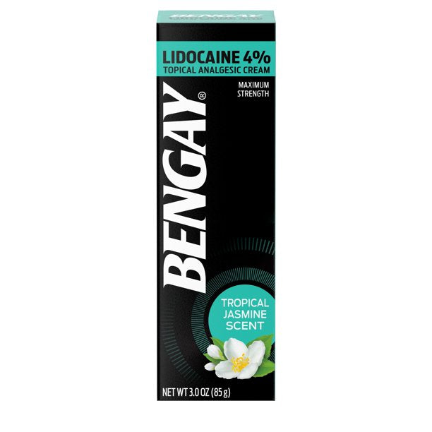 Temporarily relieve pain with Bengay Lidocaine 4% Tropical Jasmine Cream. This pain reliever cream works to desensitize aggravated nerves with effective, numbing relief so you can get back to your regular routine. Formulated with maximum strength 4% lidocaine HCl as an active ingredient, the topical analgesic cream also helps relieve pain. Great for back, neck, shoulder, knee, elbow, hand & wrist pain, as well as backaches, joint pain and arthritis. It features a light, fresh tropical jasmine scent that is soothing and a non-greasy formula that doesn't leave any residue behind. To use, apply the topical lidocaine cream to the affected area no more than 3-4 times a day.