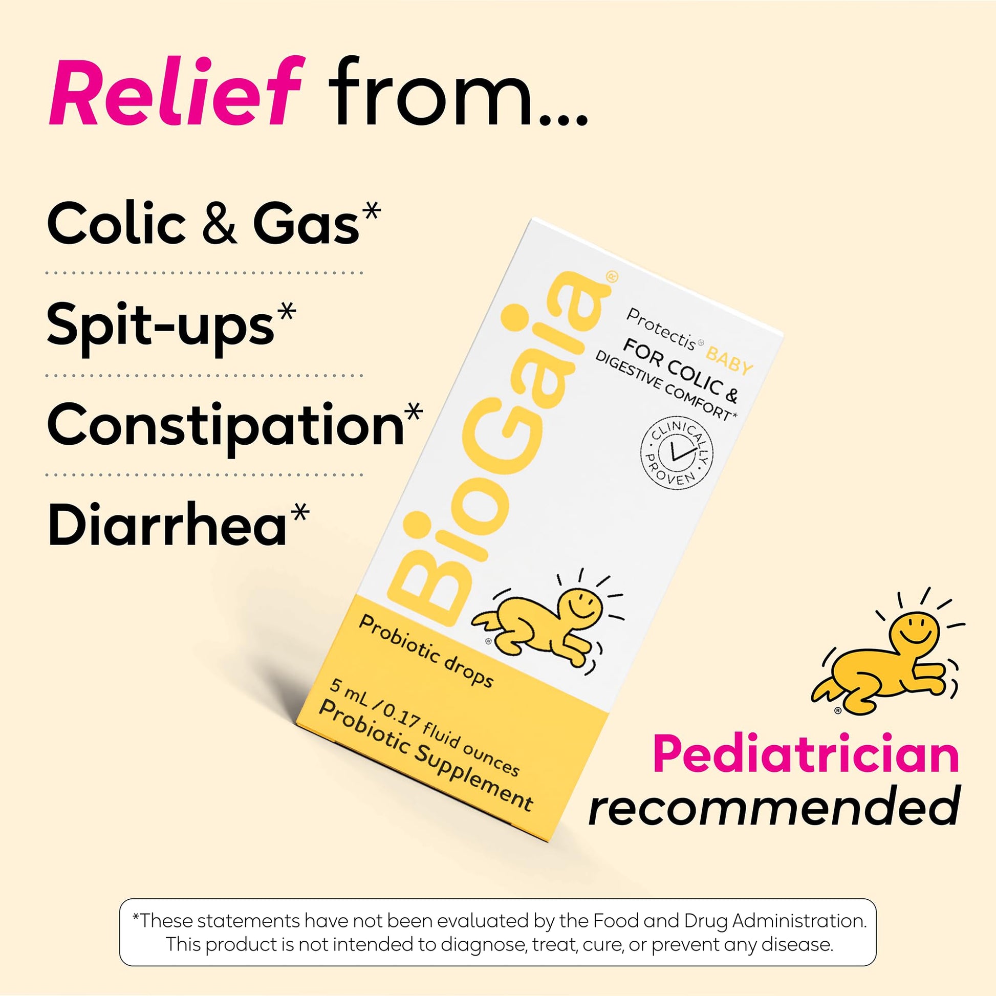- SOOTHES CRYING, FUSSING, COLIC & GAS: For over 20 years, BioGaia Baby has been soothing babies with colic & fussy tummies.* Trust BioGaia Baby, the most studied probiotic for colic in the world.