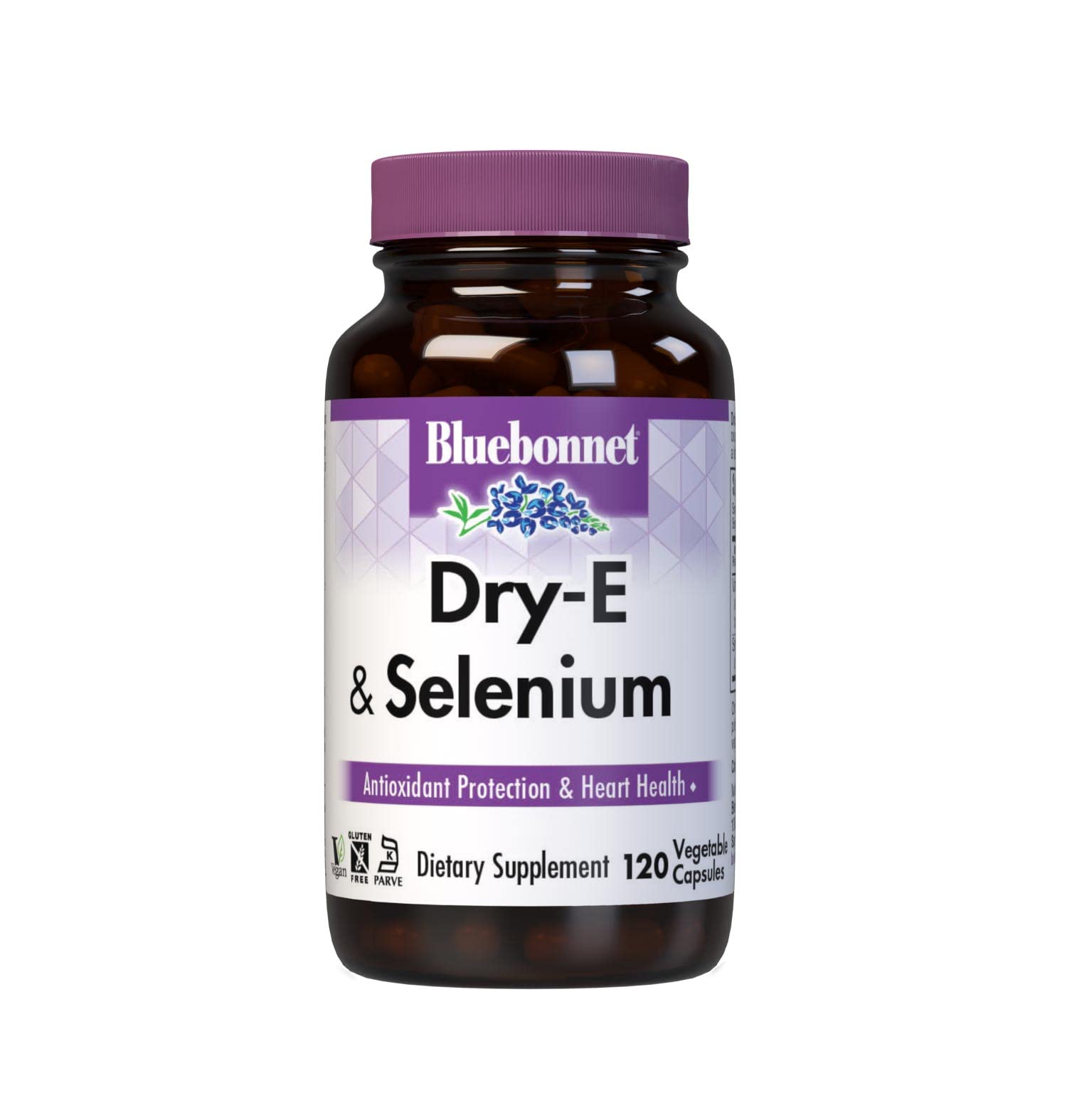 Details: Bluebonnet's Dry E-400 IU Plus Selenium Capsules contain vitamin E from oil-free d-alpha tocopheryl succinate, plus selenium from yeast-free L-selenomethionine. Available in easy-to-swallow vegetable capsules for maximum assimilation and absorption.
