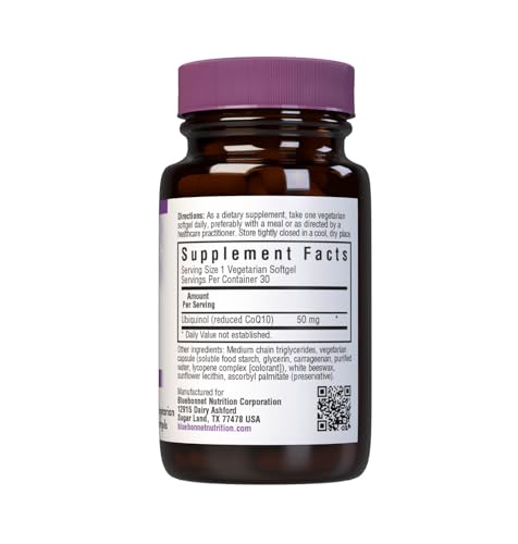 Pre-Order | Arrives in 5–10 Days – Bluebonnet Nutrition Cellular Active CoQ10 Ubiquinol 50 mg Vegetarian Softgels, Heart Health & Cellular Health, Ubiquinol from Kaneka, Non GMO, Gluten Free, Soy Free, Milk Free, 30 Vegetarian Softgels