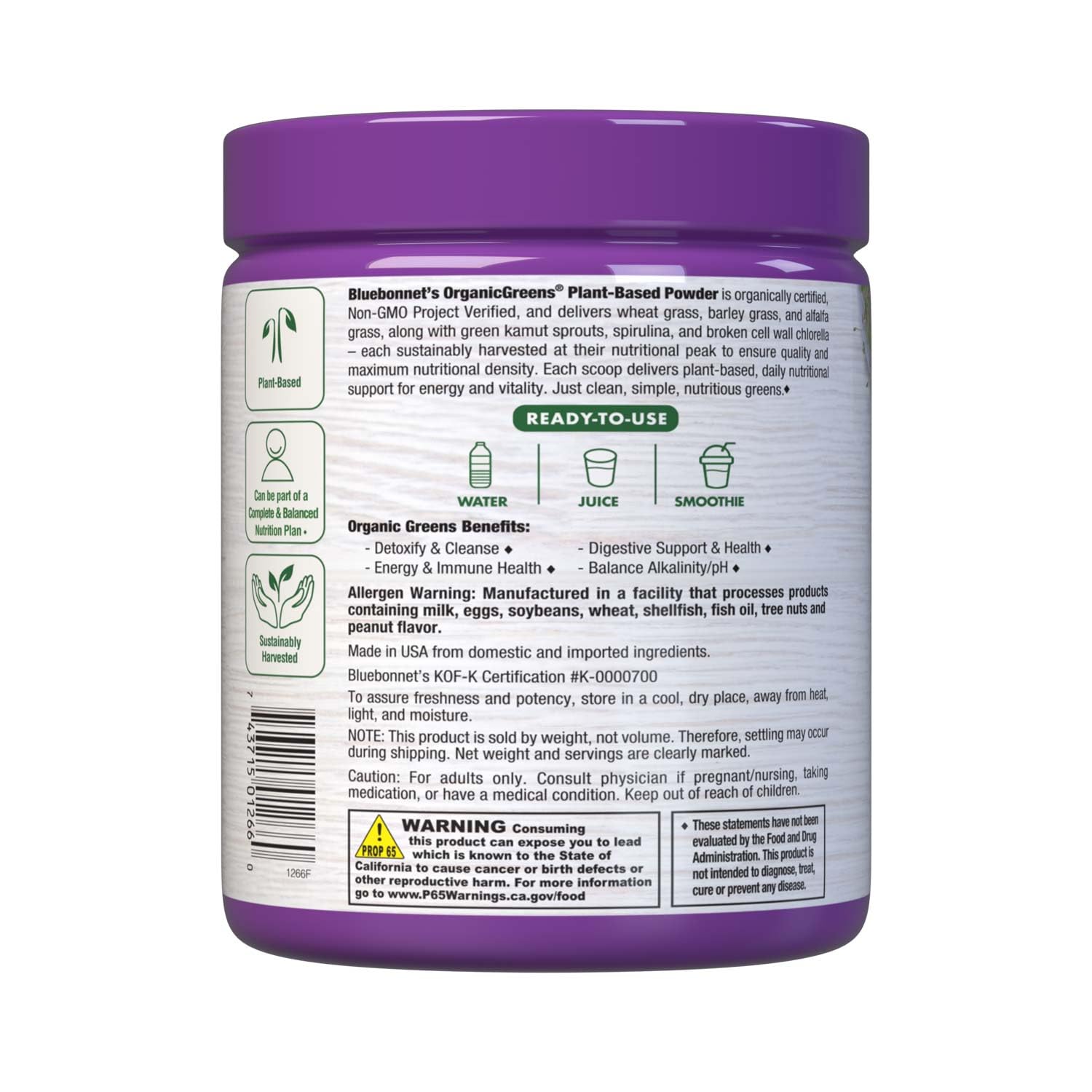 - Formulated with Unflavored, Unsweetened, Unfortified USDA Organic Greens Blend (Wheatgrass, Barley Grass, Alfalfa Grass, Green Kamut, Spirulina, Chlorella)