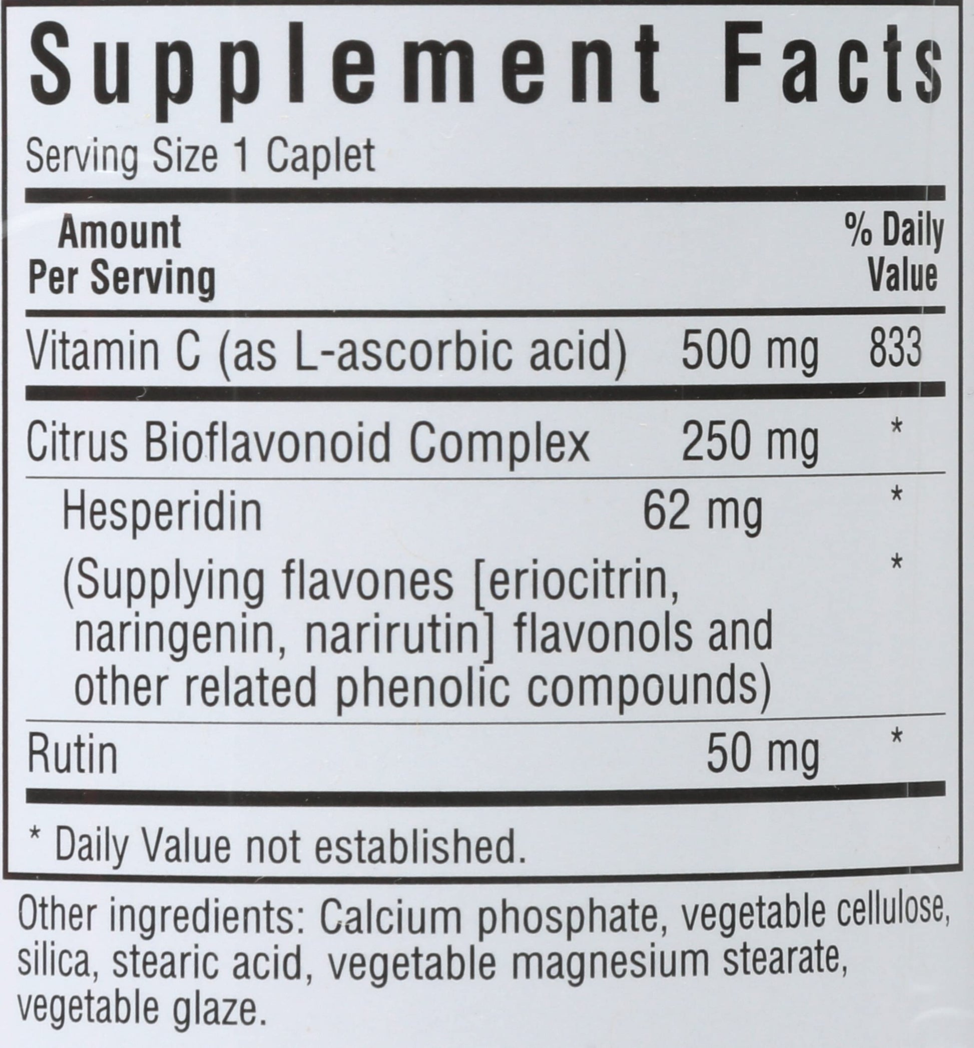Details: Bluebonnet’s C-500 mg Plus Bioflavonoids Caplets contain non-GMO, identity preserved (IP) vitamin C from L-ascorbic acid, citrus bioflavonoids complex from oranges, lemons, tangerines, grapefruits and limes, plus hesperidin and rutin. Available in easy-to-swallow caplets.