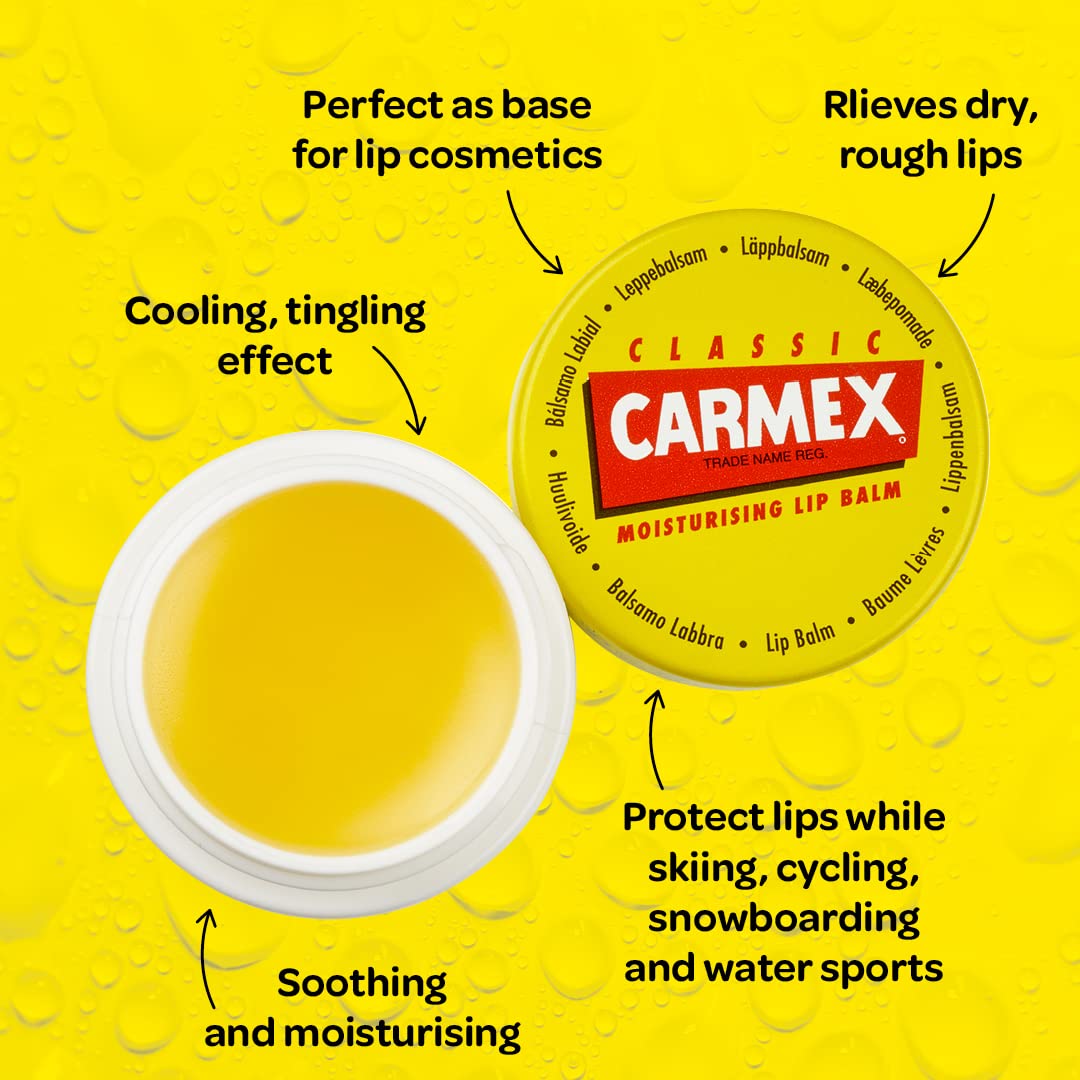 Carmex Moisturising Lip Balm. Long-lasting relief for dry, chapped lips. Directions: Apply liberally and evenly as often as necessary. Especially useful before and after exposure to sun, wind, or low temperatures. Recommended before and after lipstick application to preserve and restore moisture. Not to be used for children under 3 years of age. Refer to packaging before use. Discontinue use if irritation develops.