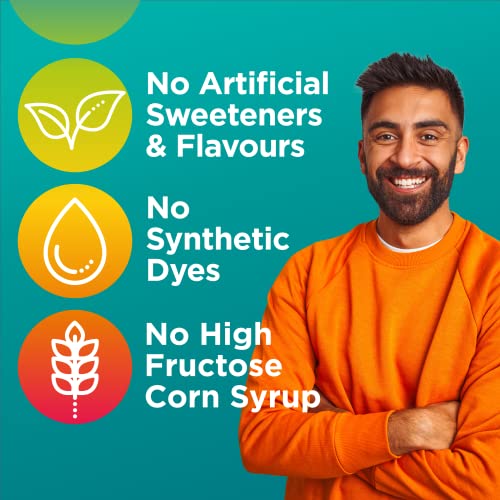 - Gummy multivitamin in tropical fruit flavours made with no high fructose corn syrup, synthetic dyes, or artificial flavours or sweeteners