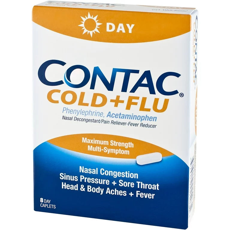Contac Cold And Flu Non Drowsy Maximum Strength Day Formula Caplets - 8 Ea - Designed to provide nasal decongestion, fever reduction and pain relief associated with a cold or flu. - Contac Cold And Flu Non Drowsy Maximum Strength Day Formula Caplets
