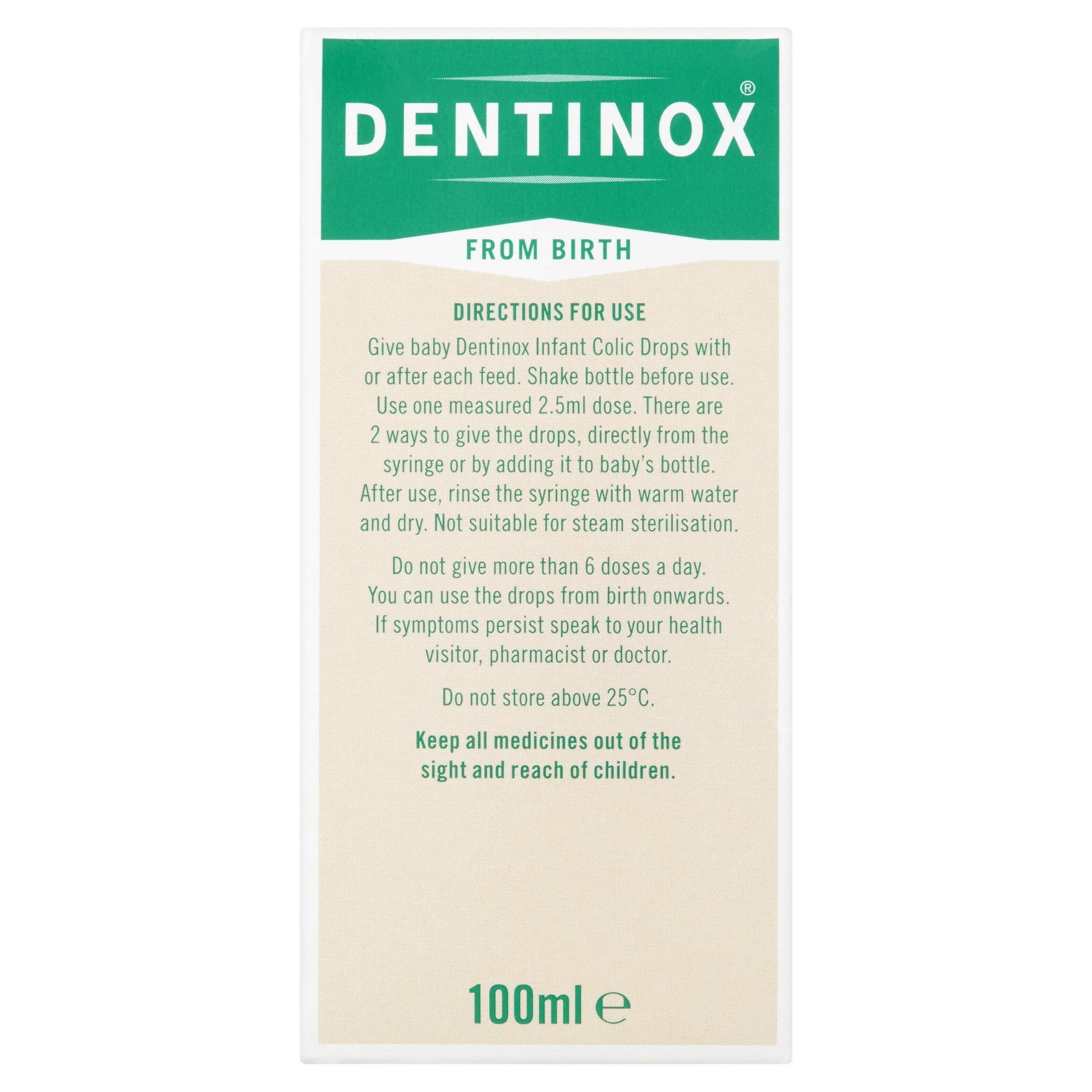 Dentinox Colic Drops come in the form of a thick liquid containing Activated Dimeticone which can either be mixed into a feeding bottle or squeezed straight into the mouth using the drip syringe supplied, making it a convenient, effective colic treatment for babies.