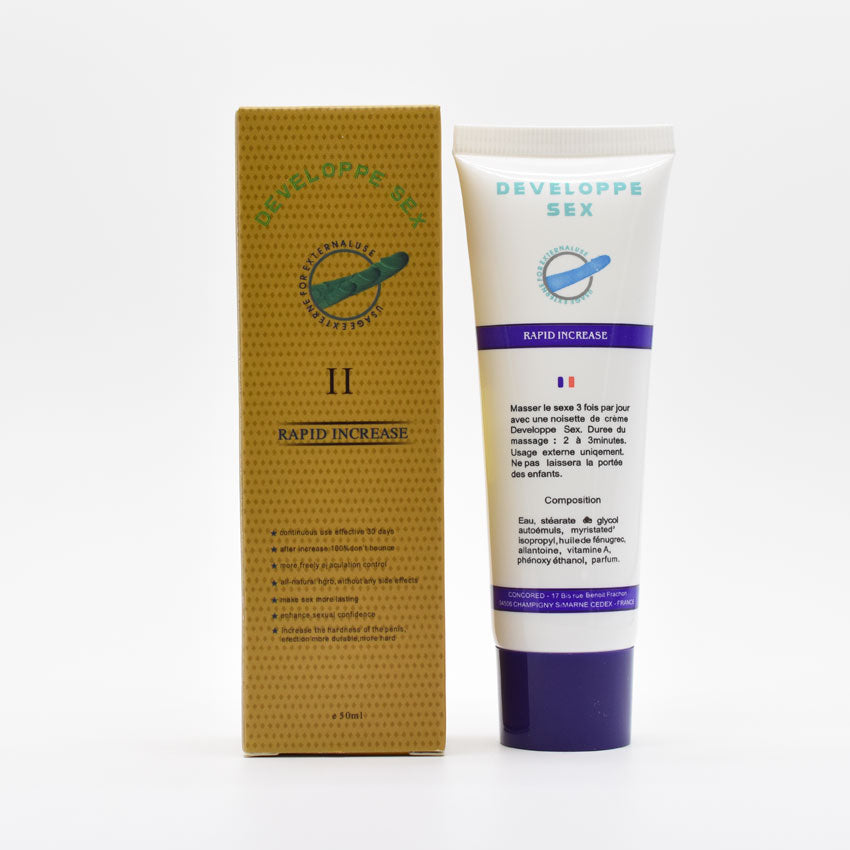 Its herbal formula can increase blood flow, release male hormones, provide nutrients necessary for penis growth, increasing the penis blood capacity thus increasing girth and promote the growth of the penis. Massage the penis with a knob of Developpe Sex cream 2 times a day.