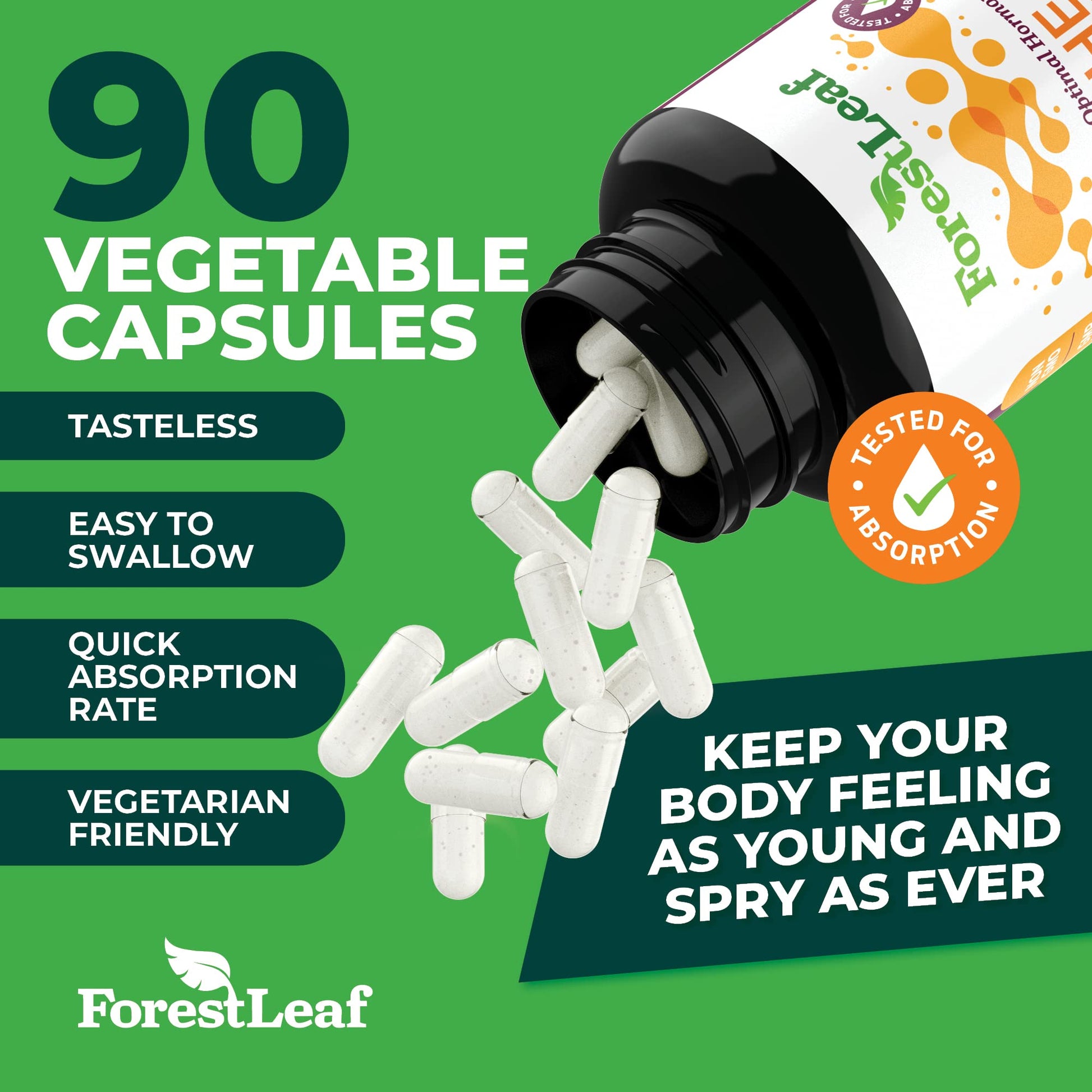 - Clean, Natural, and Tested Formulation: trust in clean ingredients with our ForestLeaf DHEA 100mg supplement, crafted in the USA in a GMP and NSF certified facility and third-party lab verified for purity and absorption. This all-natural formula is non-GMO, vegan, and free from dairy, gluten, eggs, nuts, tree nuts, shellfish, and sugar. Each bottle contains 90 capsules—for one capsule daily to a full 3-month supply of our easy-to-swallow DHEA supplement for men and women seeking reliable hormone support.