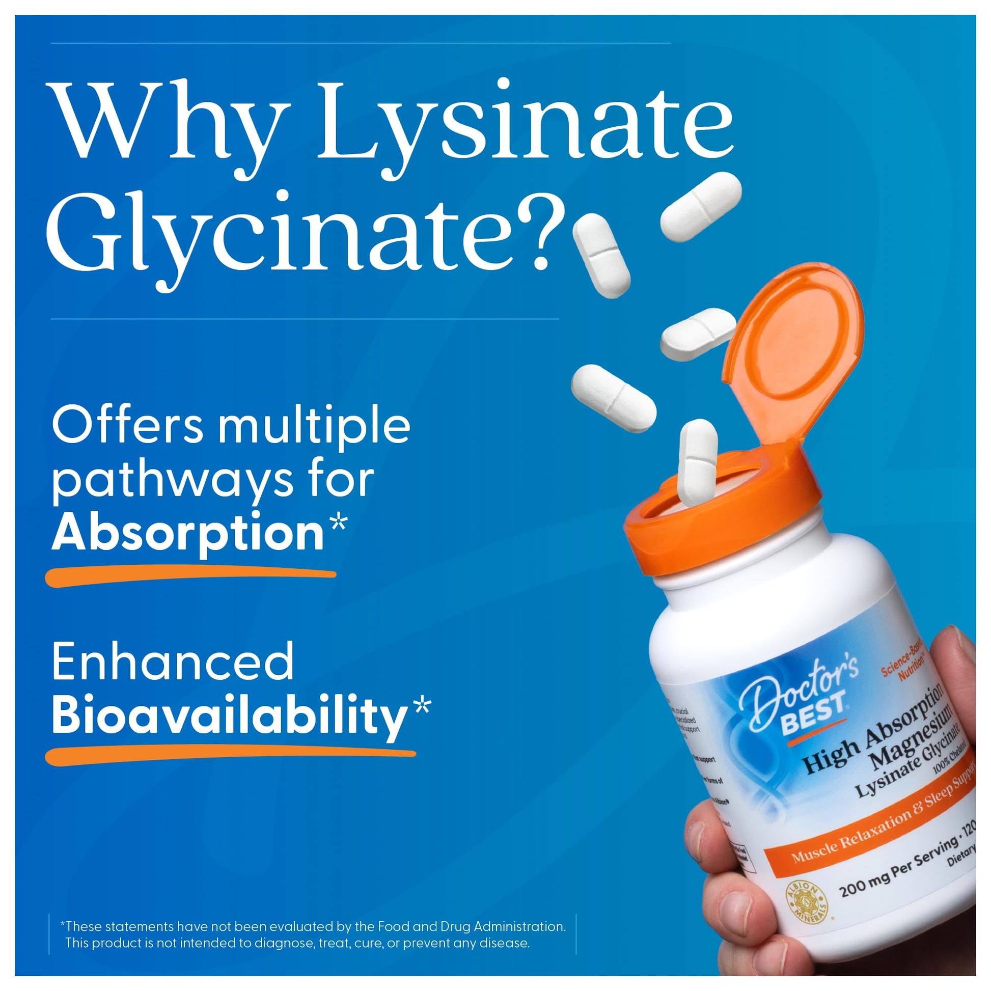 Details: Doctor's Best High Absorption Magnesium Glycinate Lysinate, 100% Chelated, Non-GMO, Vegan, Gluten & Soy Free, 100 mg, 240 Count (Pack of 1)