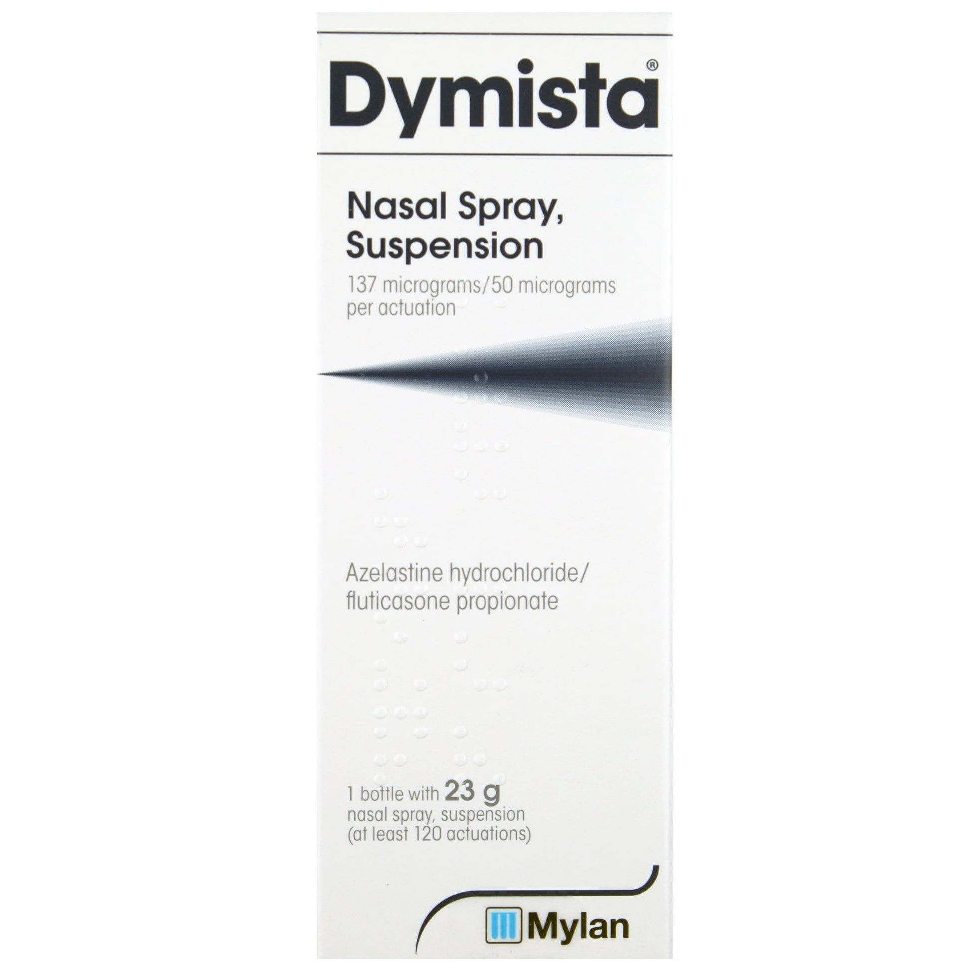 Dymista Nasal Spray is used to relieve symptoms of allergic rhinitis such as runny or blocked nose, sneezing or itchiness when use of over the counter steroid nasal sprays or antihistamine nasal sprays alone are not considered sufficient.