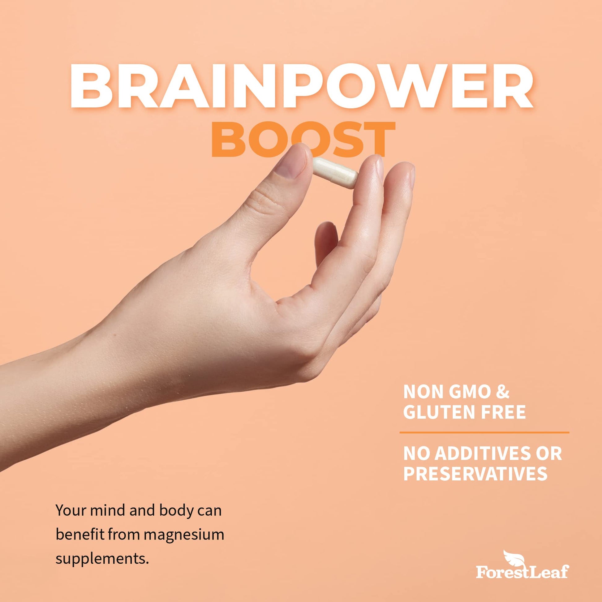 Pre-Order | Arrives in 5–10 Days – Forest Leaf Magnesium L-Threonate Magtein Capsules - 2000mg Magnesium Threonate Supplement Supports Cognitive Function, Focus, Brain, Deep Calm and Sleep for Men & Women | 90 Powder Veg Caps