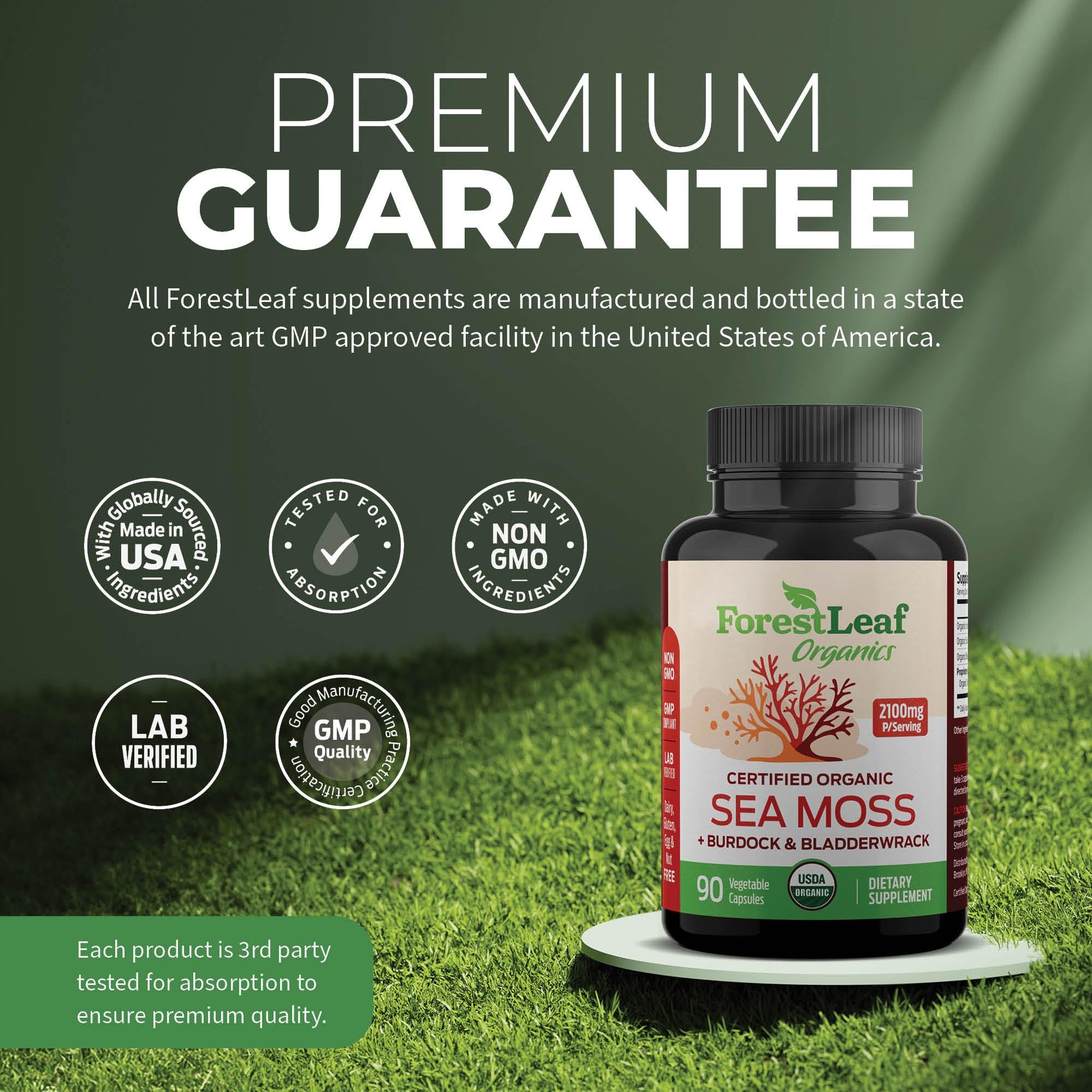 Pre-Order | Arrives in 5–10 Days – ForestLeaf Organic Irish Sea Moss Capsules | 2100mg Raw Seamoss Pills Advanced Supplement Superfood + Burdock, Bladderwrack for Digestive, Respiratory, Immune Health | 90 Vegan Organic Sea Moss Caps
