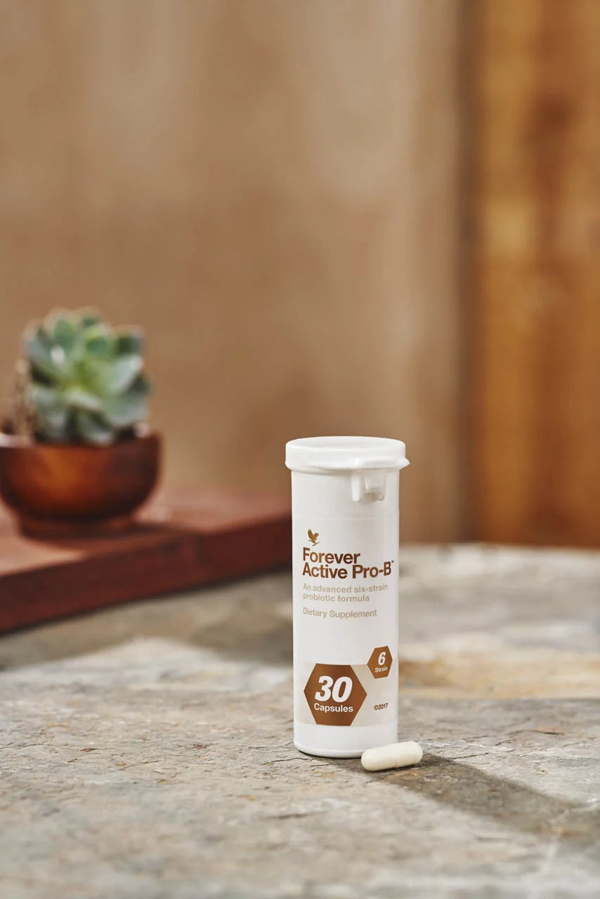 With a proprietary blend of 6 different strains, Forever Active Pro-B™ probiotic provides 8 billion CFU per dose. These strains were researched and selected based on their beneficial properties, clinical research and their ability to work synergistically. This formula also includes a prebiotic fiber to sustain the probiotics during storage, transport and delivery to the gut.