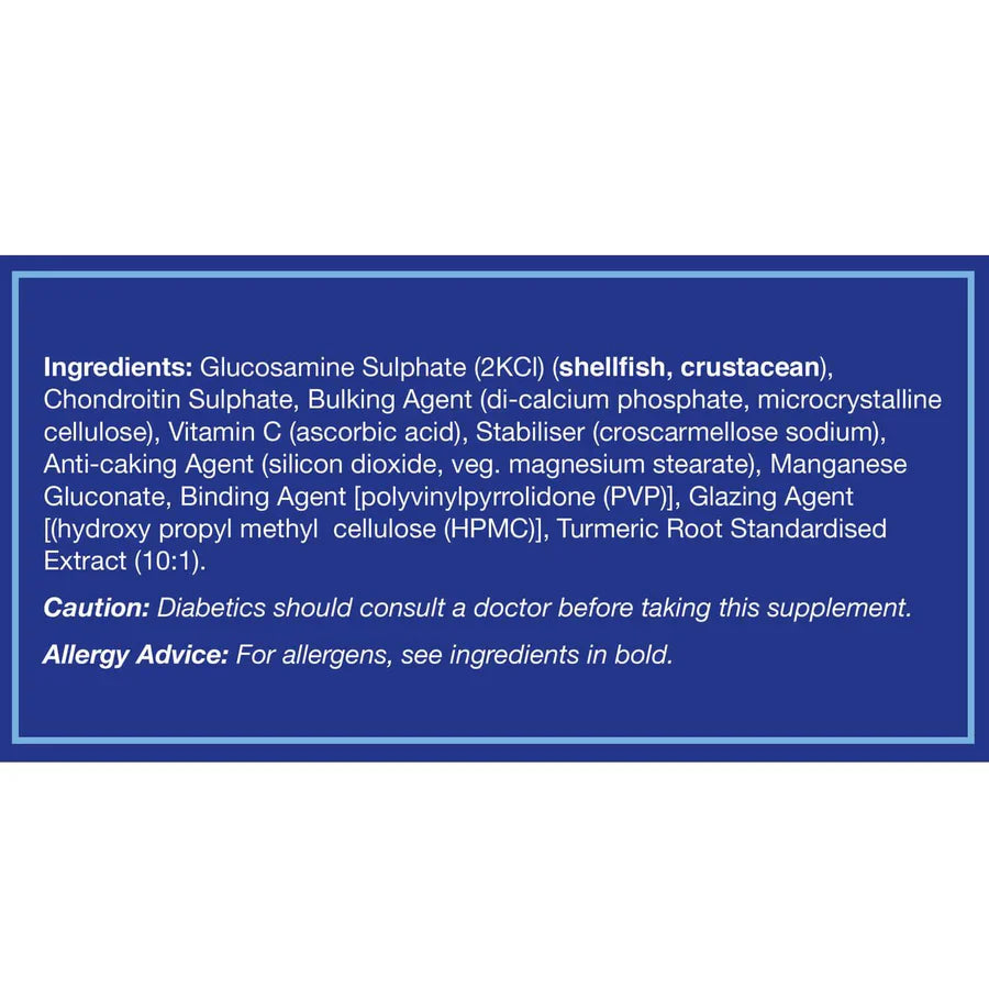 Osteoflex® formulation provides nutritional support for healthy joints and cartilage. A unique combination of high-quality Glucosamine and Chondroitin Sulphate with added Vitamin C, Turmeric and Manganese. Suitable for men and women of all ages. Vitamin C contributes to normal collagen formation for the normal function of cartilage and bones. Manganese contributes to the normal formation of connective tissue and to the maintenance of normal bones. Turmeric has potent natural anti-inflammatory properties.