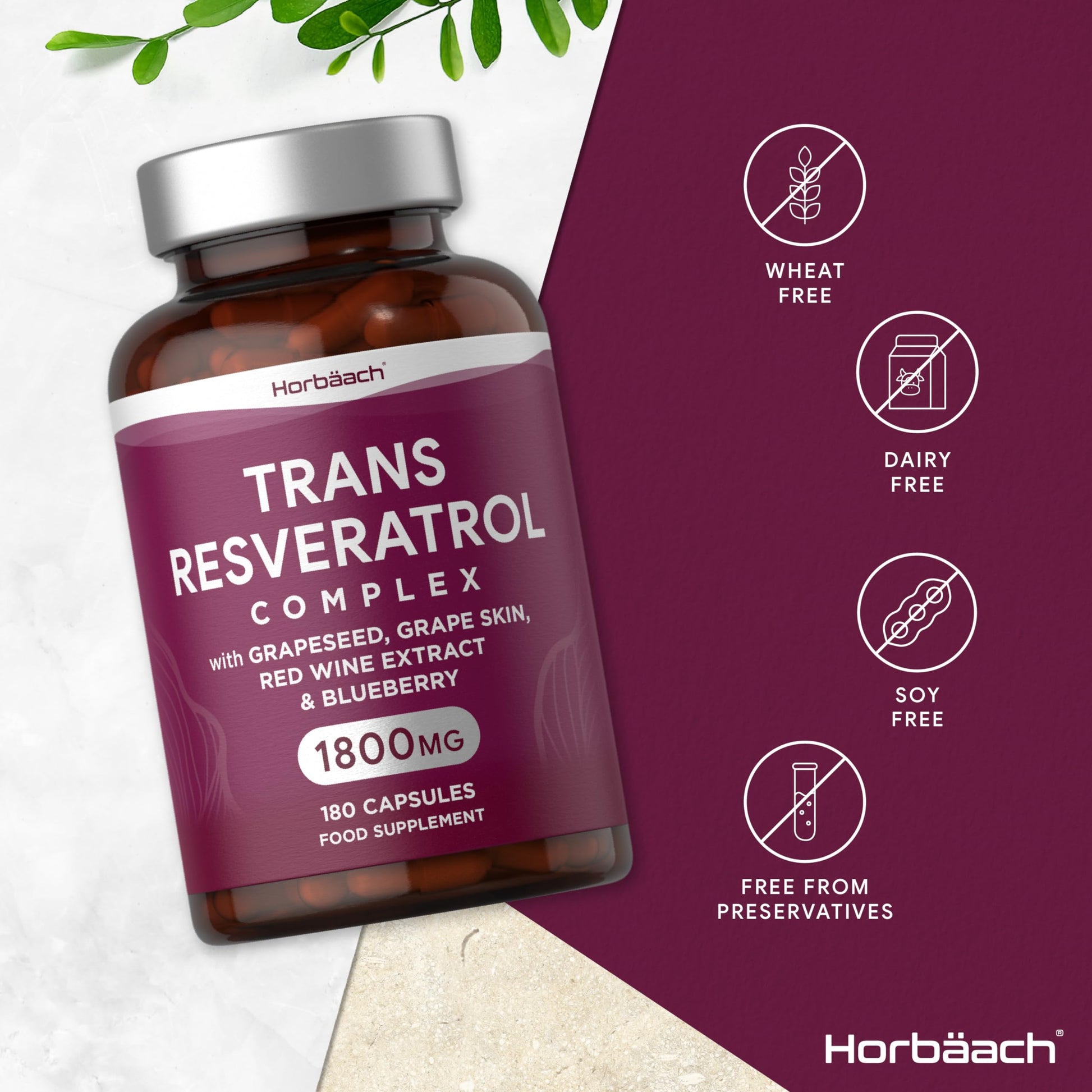 HORBÄACH TRANS RESVERATROL COMPLEX 1800MG, 180 CAPSULES