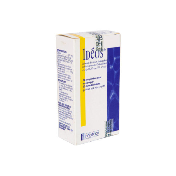 - Ideos is a mineral and vitamin supplement for adults . Ideos is a chewable tablet containing calcium and vitamin D 3.