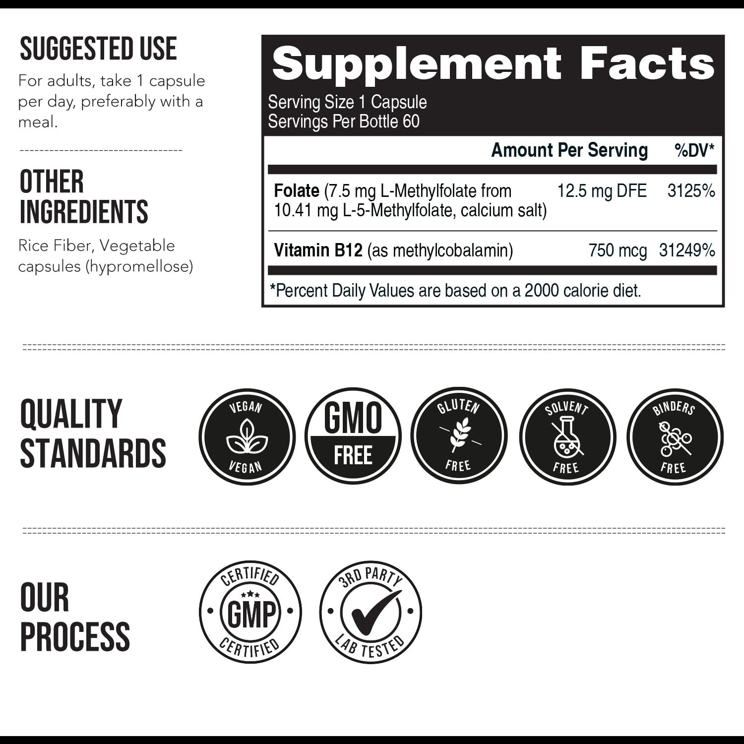 - DAILY DOSE of 7.5 MG L METHYL FOLATE : Provides dose of 7.5mg L Methylfolate in the 5-MTHF calcium salt form. This is the most active form of Folate.