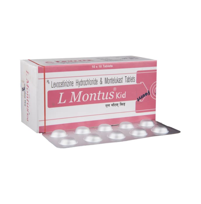 L Montus Kid Tablet is a combination medicine used in the treatment of allergic symptoms such as runny nose, stuffy nose, sneezing, itching, swelling, watery eyes and congestion or stuffiness. It also reduces inflammation in the airways and make breathing easier.