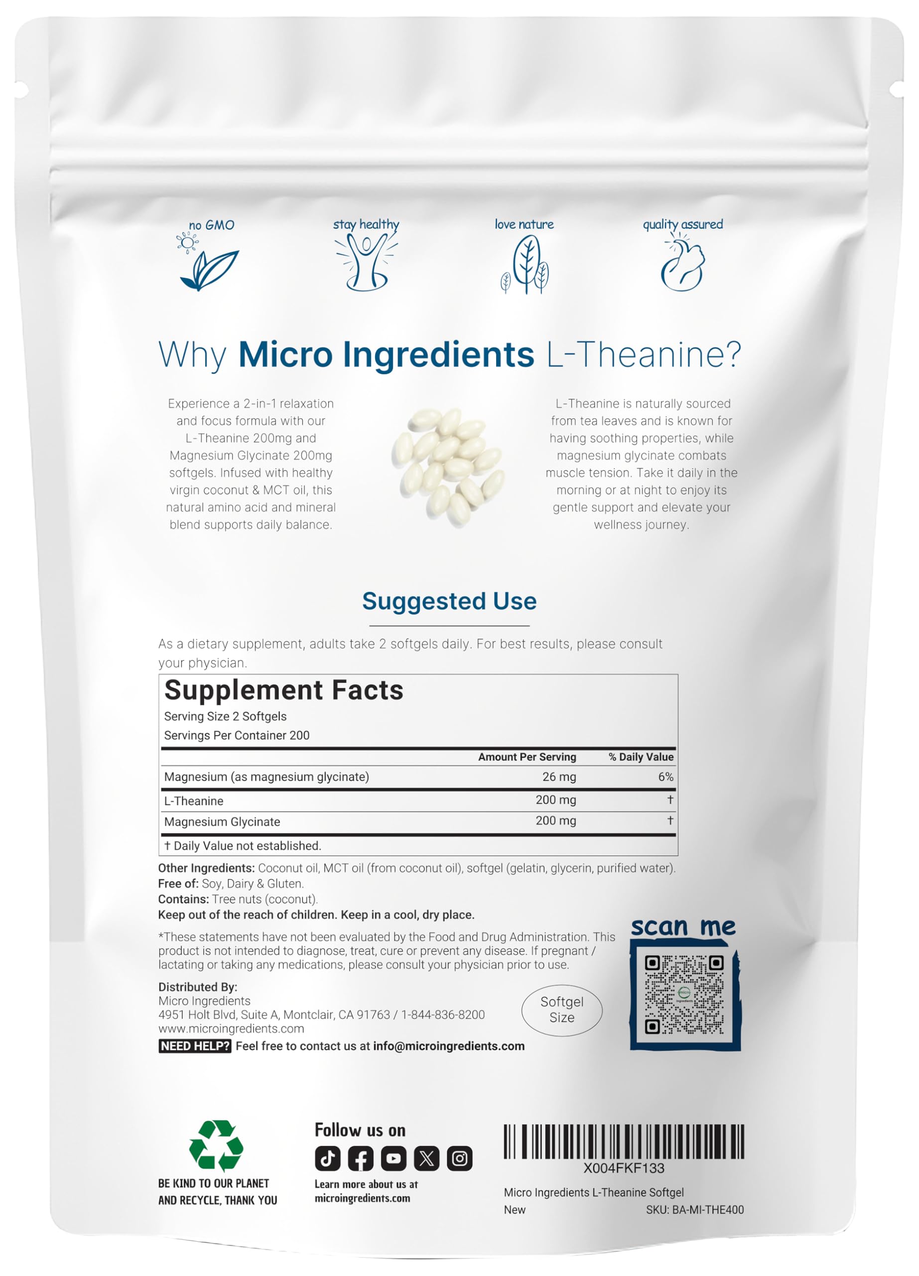 - Micro Ingredients offers 2-in-1 L-Theanine with Magnesium Glycinatecoconut oil softgels. A well-absorbed formula combining natural amino acidsand minerals.