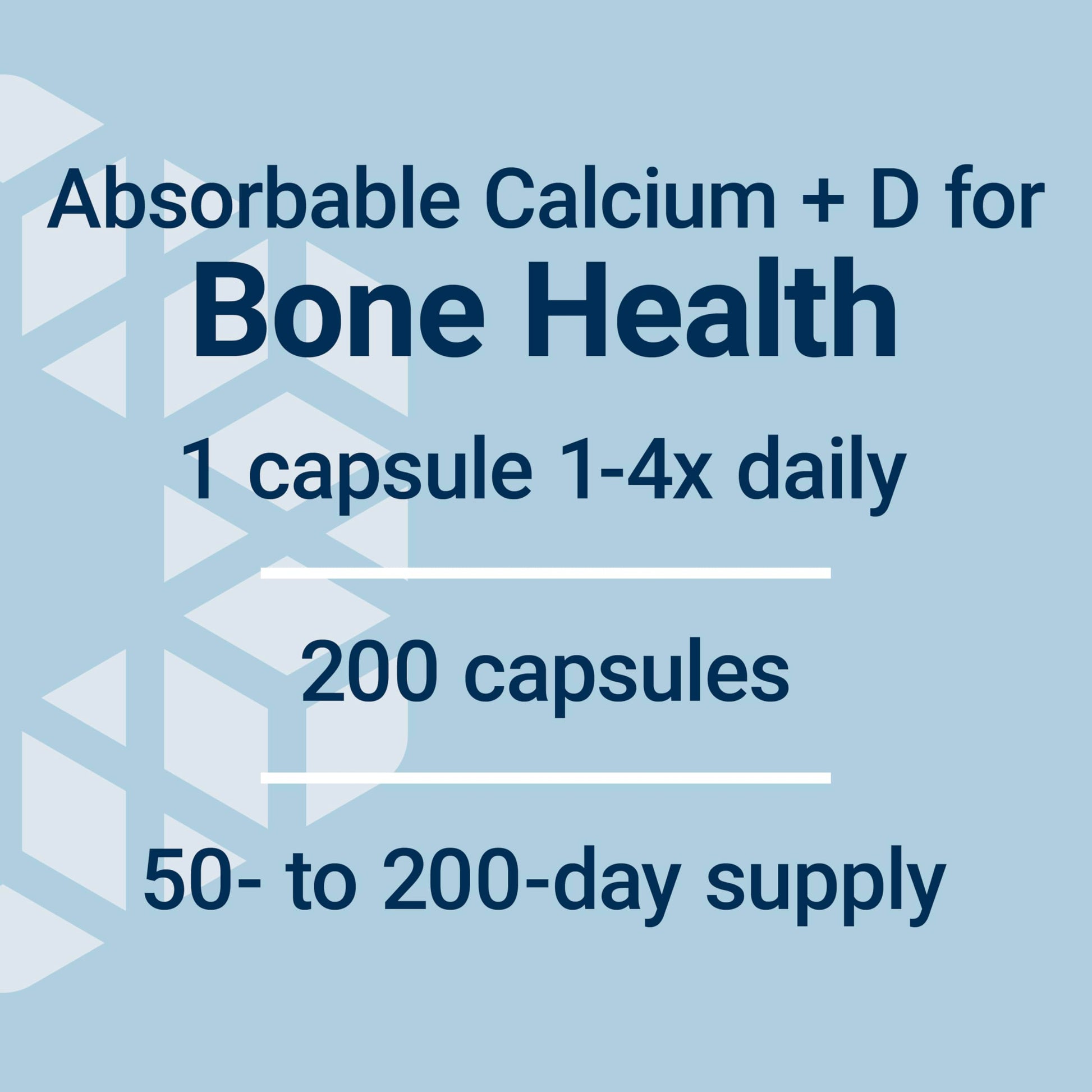 Details: Calcium Citrate with Vitamin D is a novel formula for bone health. It contains a highly absorbable blend of calcium citrate and vitamin D3 to support healthy bone density and bone strength. Calcium Citrate with Vitamin D contains 200 gluten-free capsules, enough for a 50- to 200-day supply. This formula is made with 100% non-GMO ingredients.