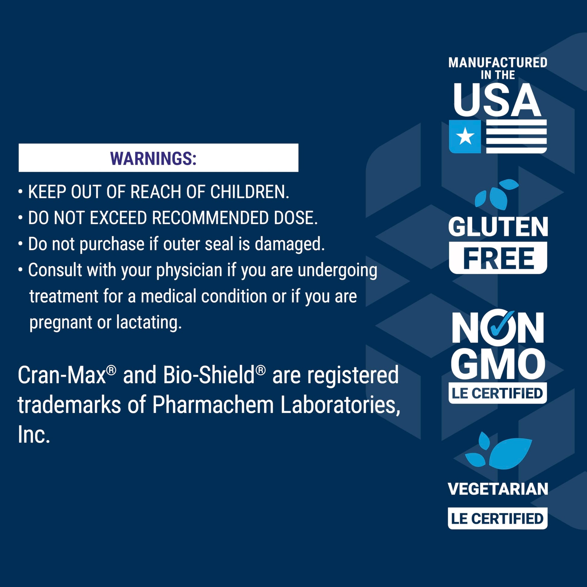Details: Cran-Max® is a powerful formula for urinary tract health. It contains 500 mg of cranberry whole fruit concentrate, packed with antioxidant polyphenols with whole-body health benefits. Cran-Max® contains 60 vegetarian and gluten-free capsules, enough for a two-month supply. This formula is made with 100% non-GMO ingredients.