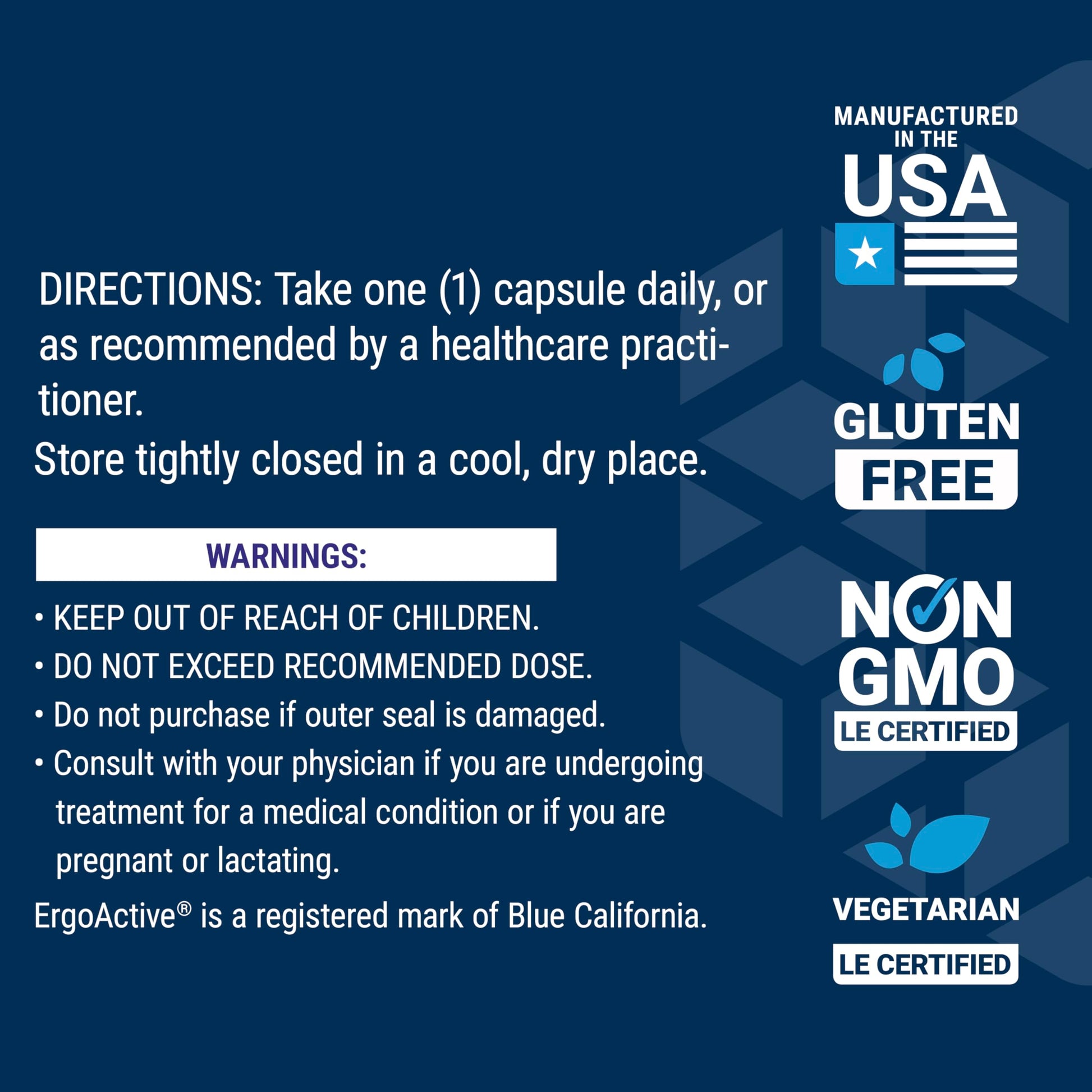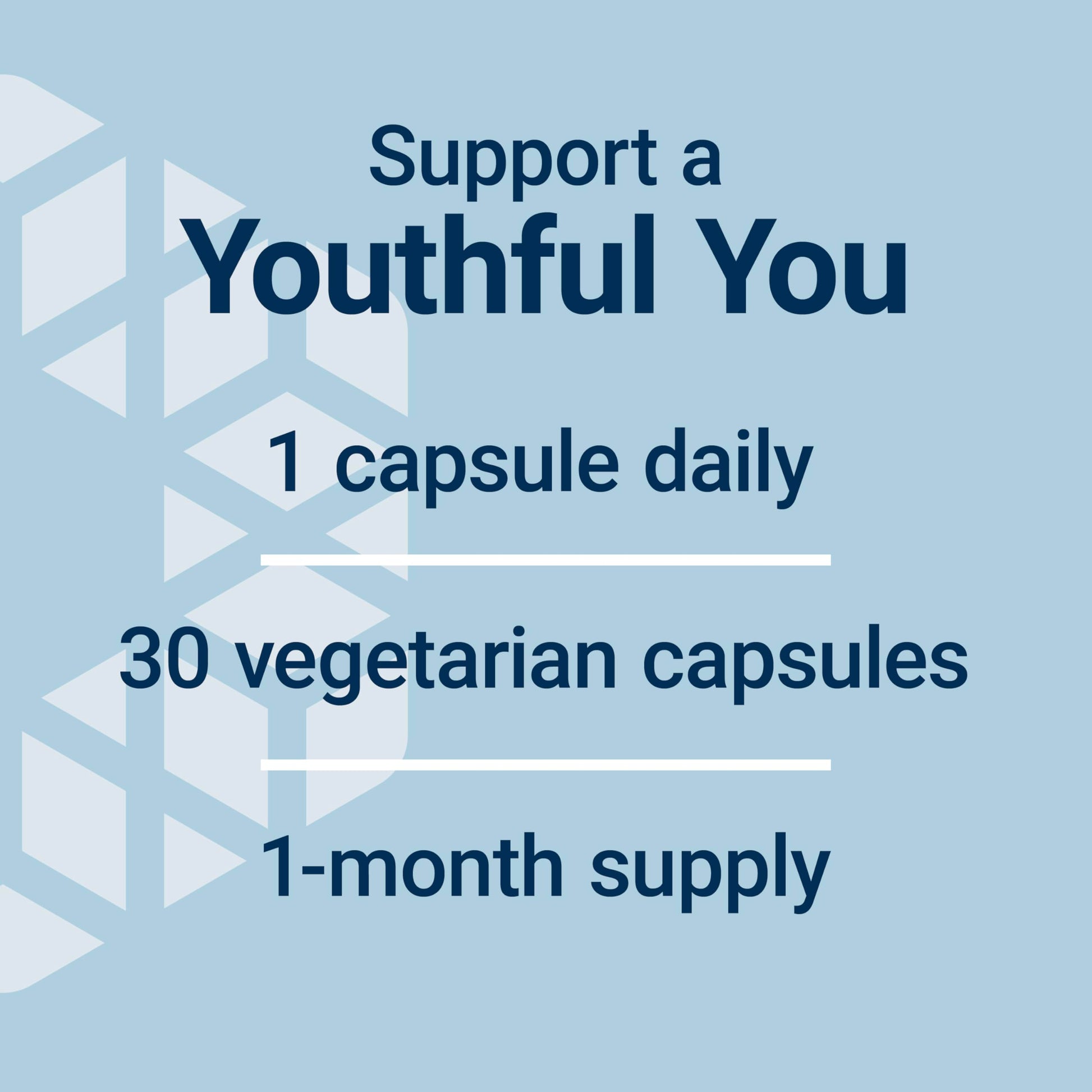 Details: Essential Youth L-Ergothioneine is a novel formula for healthy aging. It contains 5 mg of ergothioneine, an amino acid clinically studied to help fight oxidative stress. Essential Youth L-Ergothioneine contains 30 vegetarian, gluten-free capsules, enough for a 1-month supply. This formula is made with 100% non-GMO ingredients.