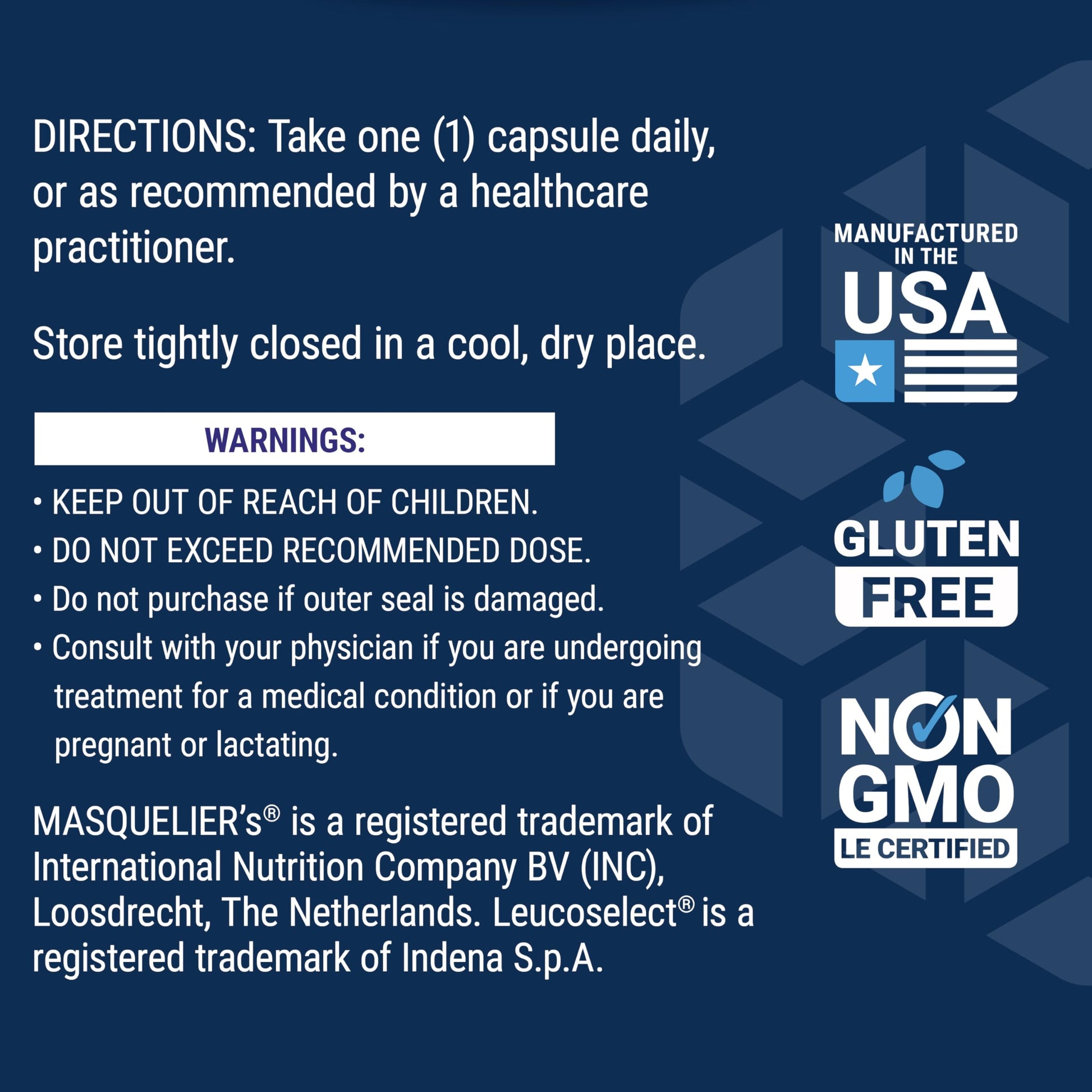 Details: Grapeseed Extract is a healthy aging and heart health formula. It contains a grapeseed extract and polyphenol blend, vitamin C, calcium, and resveratrol to support cardiovascular health, help maintain already healthy blood pressure and heart rate, promote healthy cell division, and provide antioxidant protection. Grapeseed Extract contains 60 gluten-free capsules, enough for a two-month supply. This formula is manufactured in the USA with non-GMO ingredients.