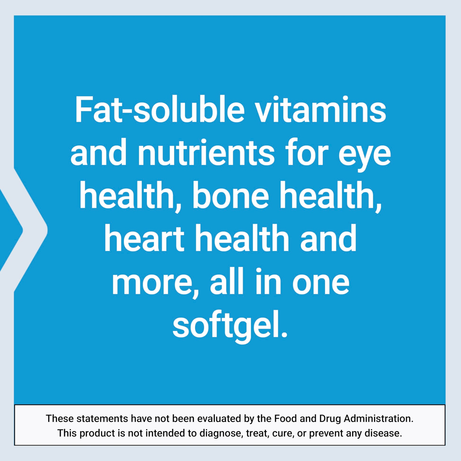 - Fill dietary gaps – Most people don’t get enough oil-based nutrients from their diet or daily multivitamins. So, we’ve packed a variety of fat-soluble vitamins into a single softgel to encourage whole-body health, especially over time.