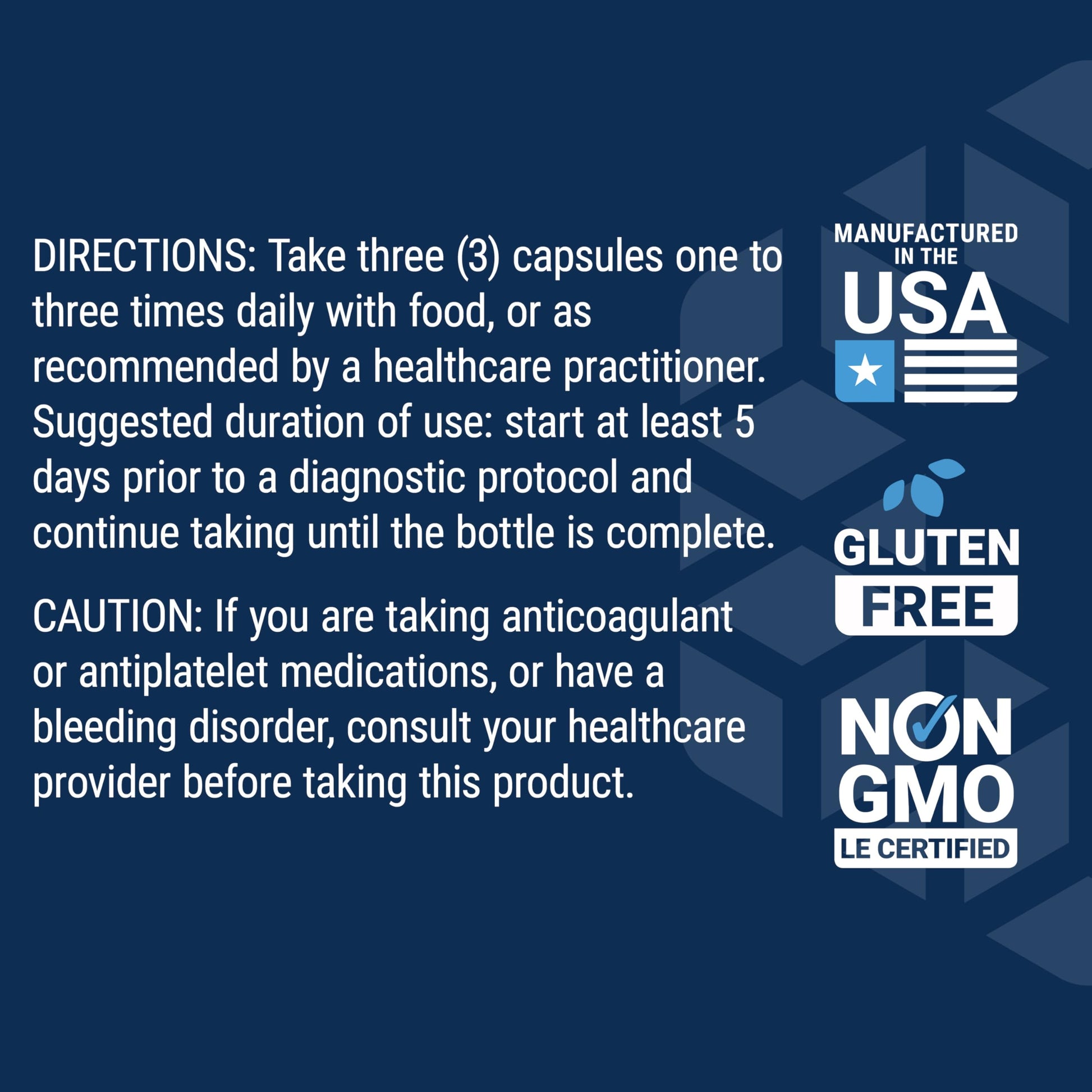 Details: X-R Shield is a novel formula for cellular integrity and DNA health. It contains lemon balm, ginkgo biloba, and organic spirulina, which provide powerful antioxidant support, help maintain healthy DNA and encourage a healthy immune response. Studies show these nutrients may help support and nourish the body's cellular integrity, especially if you’re planning to get X-rays or other diagnostic imaging tests. X-R Shield contains 90 gluten-free capsules, enough for a 10- to 30-day supply. If you have upcoming plane travel or diagnostic imaging procedures, the suggested use is to take three capsules of X-R Shield one to three times daily, beginning at least five days beforehand and continuing until the bottle is finished. This formula is manufactured in the USA with non-GMO ingredients.