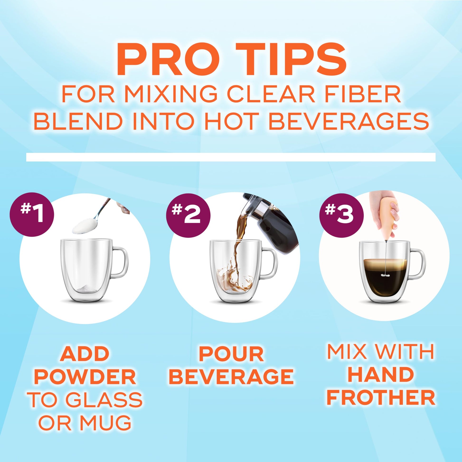 - UNFLAVORED, MIXES CLEAR with NO GRIT: Metamucil Clear Fiber Blend is easy to add to your daily routine. Try Clear Fiber Blend in your coffee, smoothies, juice, tea, and more!