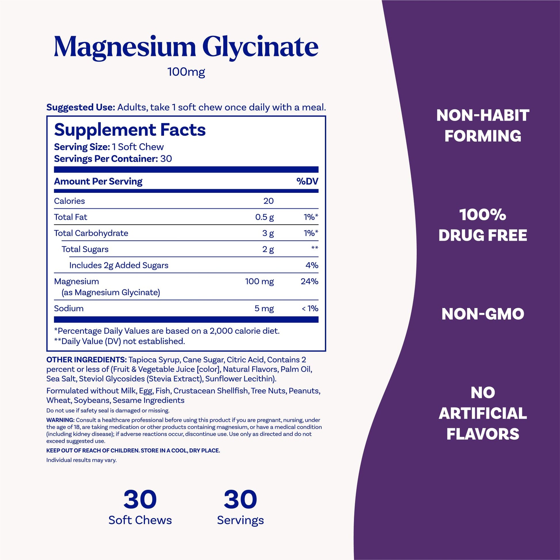 - DELICIOUS TASTING SOFT CHEWS: Magnesium glycinate soft chews feature magnesium for sleep and a delicious cherry lemon flavor and are gentle on the stomach and free of major allergens; 30 soft chews for a 30 day supply