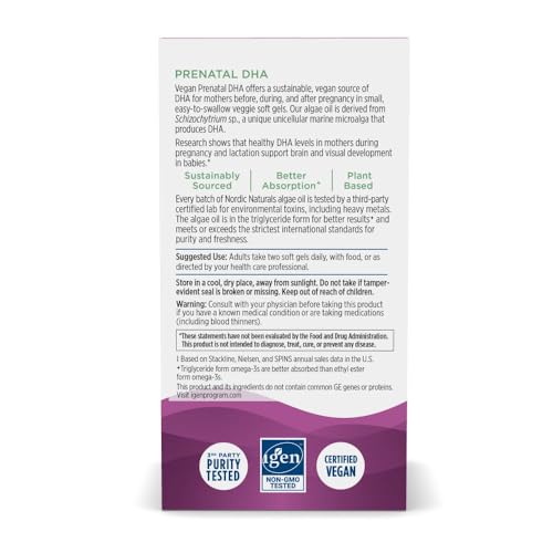 - WHY OMEGA-3s - Research shows that healthy DHA levels in mothers during pregnancy and lactation support optimal brain and visual development in babies. Vegan Prenatal DHA provides 500 mg of plant-based DHA.