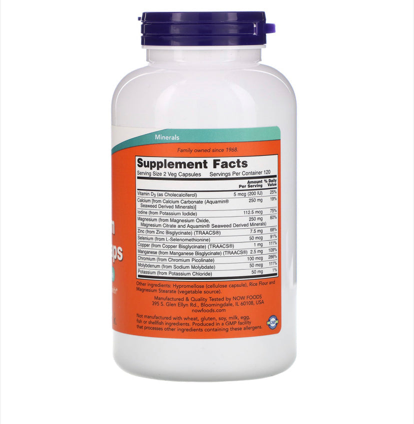 Now Full Spectrum Mineral Caps is a comprehensive combination of the most important dietary minerals used by the body. This formula contains recommended potencies of essential minerals, including Calcium for strong bones and teeth and Zinc for immune system support. Plus, Full Spectrum Mineral Caps is an iron-free supplement and has 1:1 ratio of Calcium to Magnesium.