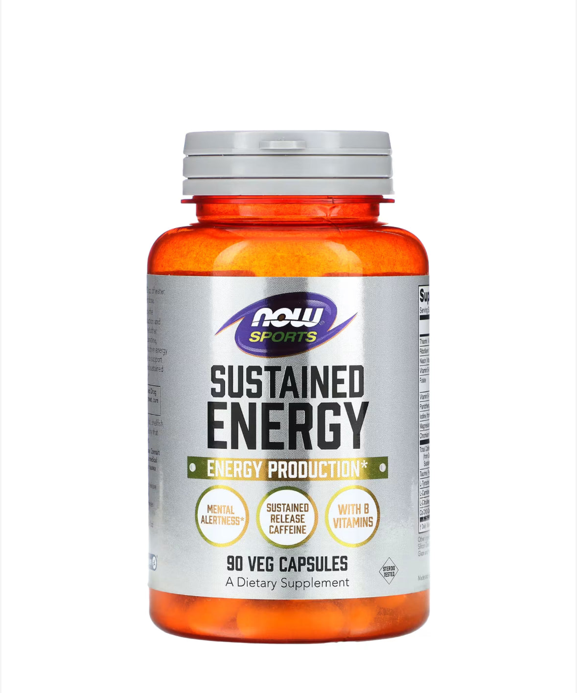 NOW Sports Sustained Energy is formulated to supply the nutrients you need to promote sustained energy production and mental alertness. With a complement of B vitamins and other cofactors such as chromium, magnesium malate and carnitine, Sustained Energy delivers what your cells need most to drive energy production. This product also has tyrosine and iodine to support optimal thyroid function, plus a blend of immediate and sustained release caffeine to get you going and keep you going.