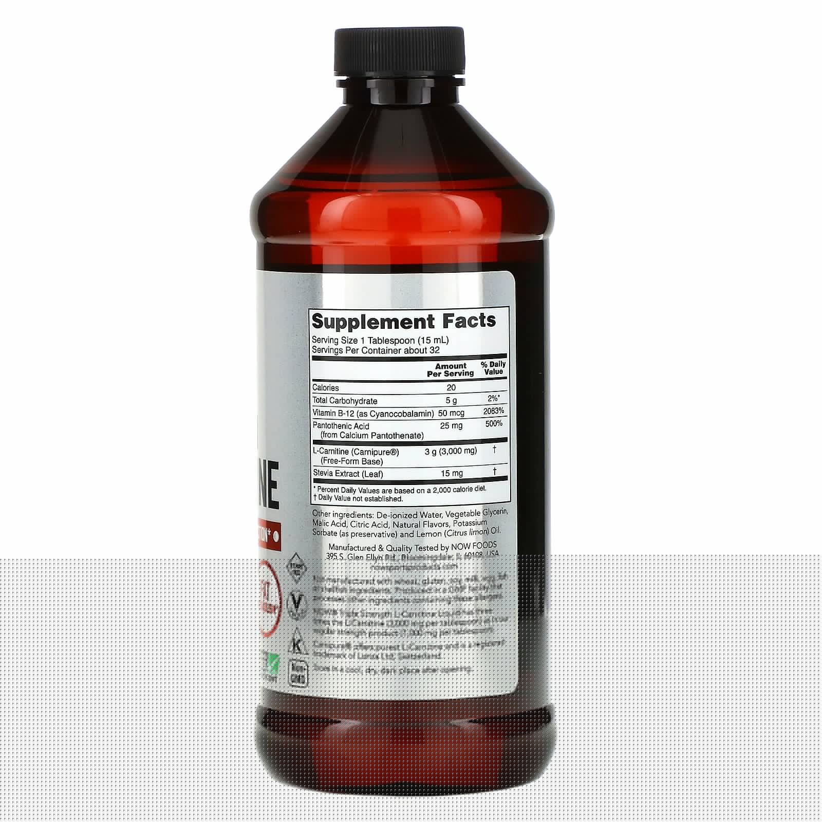 Now Triple Strength L-Carnitine Liquid has three times the L-Carnitine (3,000 mg per tablespoon) as in our regular strength product (1,000 mg per tablespoon).
