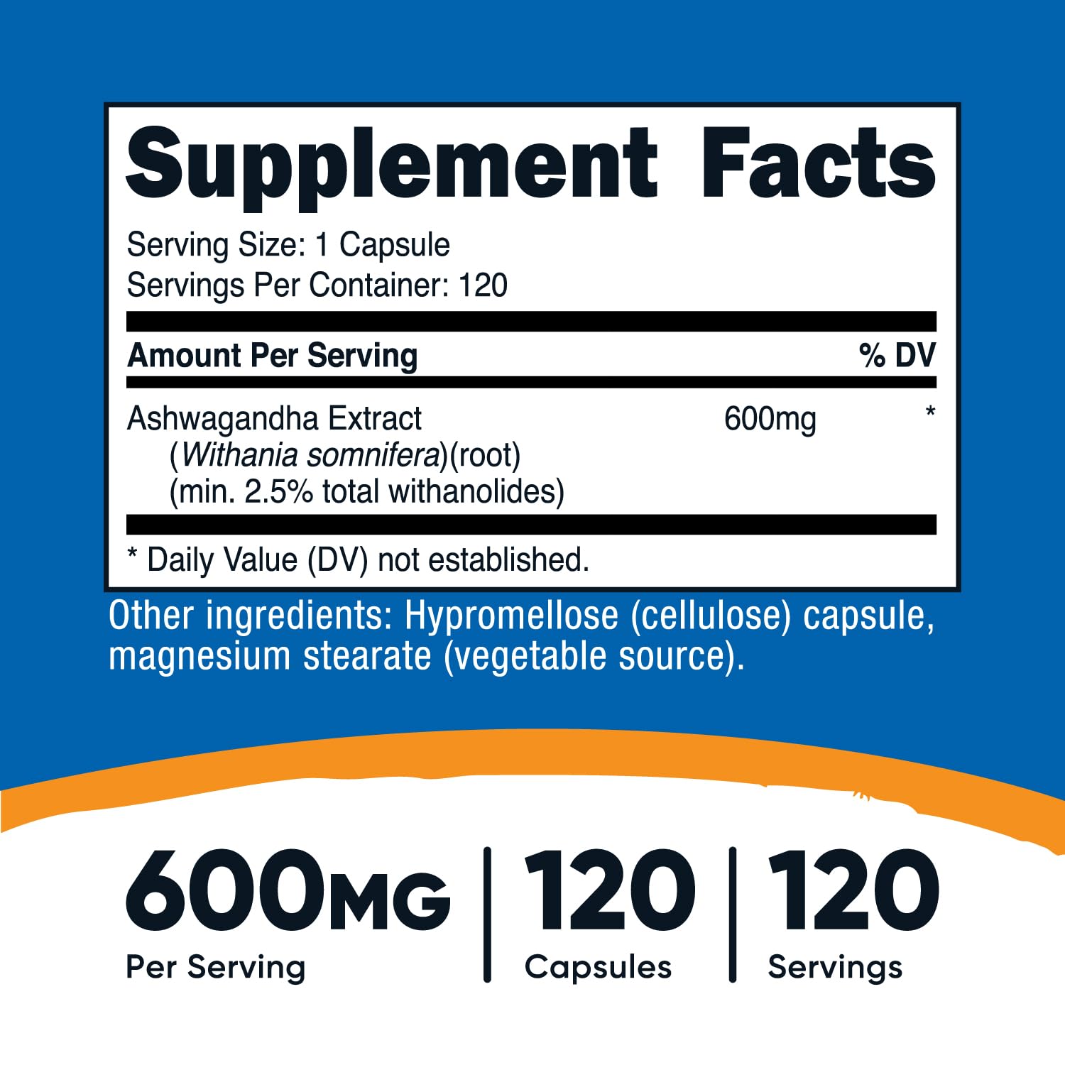 - High potency: Each serving of these capsules contains a robust 600 mg of ashwagandha extract, ensuring you receive a potent serving of this traditional herb.