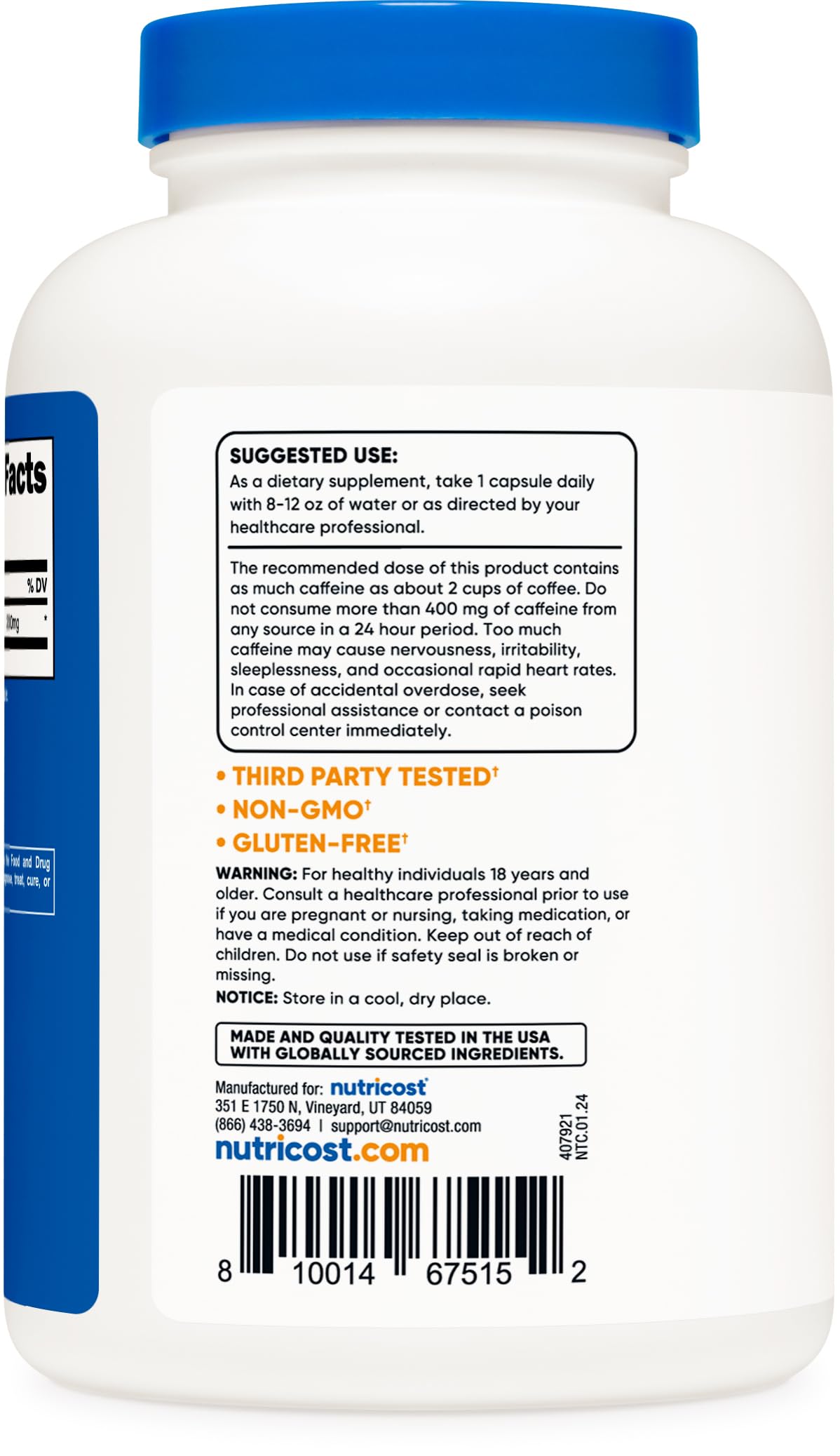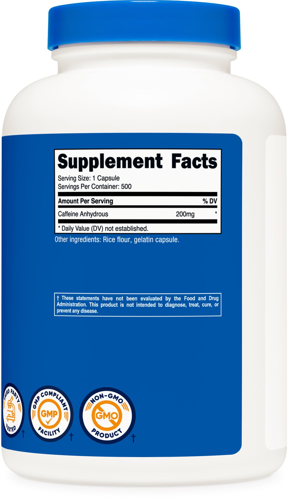 Pre-Order | Arrives in 5–10 Days – Nutricost Caffeine Pills, 200mg Per Serving (500 Caps)