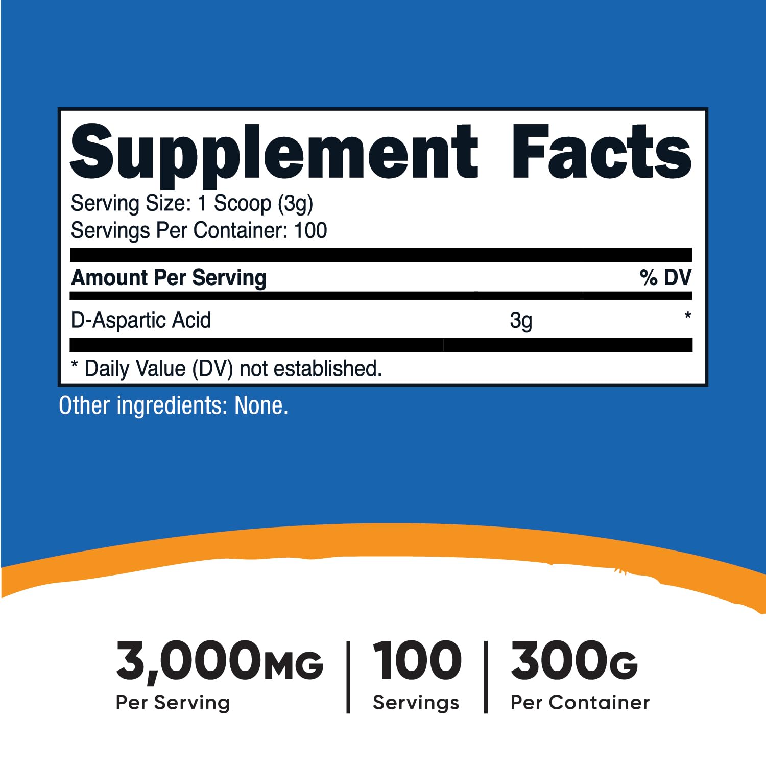 - 300 Grams of D-Aspartic Acid powder per Bottle