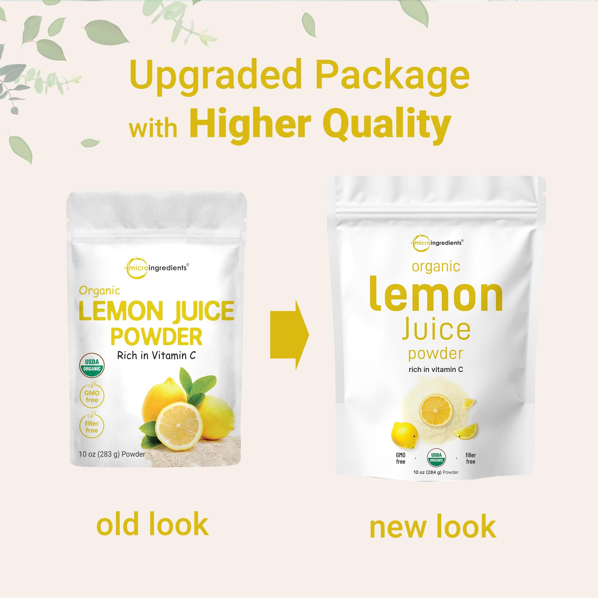 - USDA Organic Lemon Juice Powder, 10oz supply, non-GMO and vegan friendly cold pressed fresh lemons source.