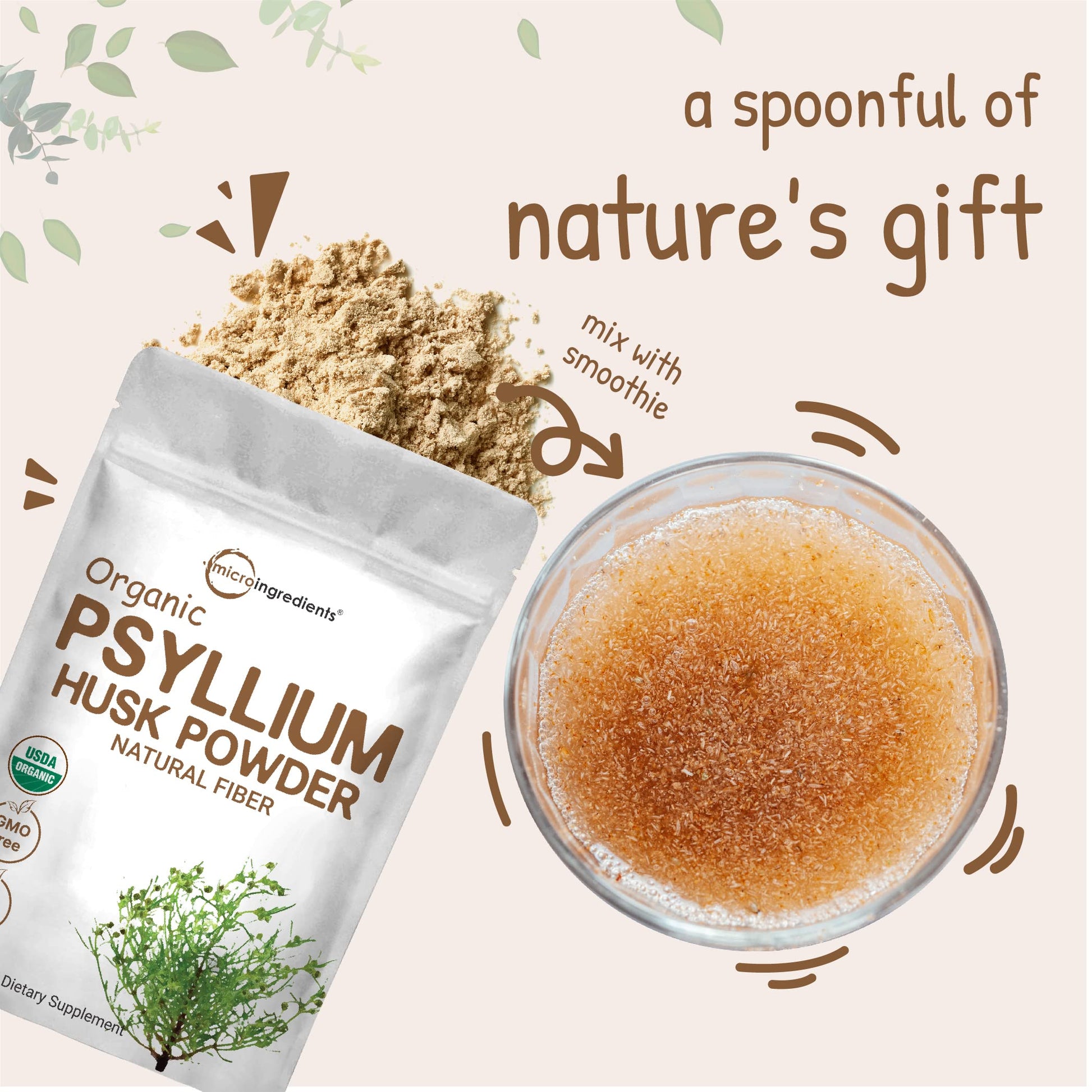 - Micro Ingredients’ whole psyllium husk seed powder supplement. Offers raw and organic India psyllium husk powder from an authentic Indian source called plantago ovata. Retains essential prebiotics and probiotics for womens and mens digestive health.