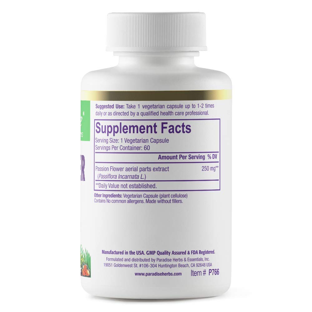 Pre-Order | Arrives in 5–10 Days – Paradise Herbs Passion Flower, Supplement for Relaxation, Super Potent, Ultra Pure, Vegan, Non GMO, Gluten Free, 60 Count Vegetarian Capsules