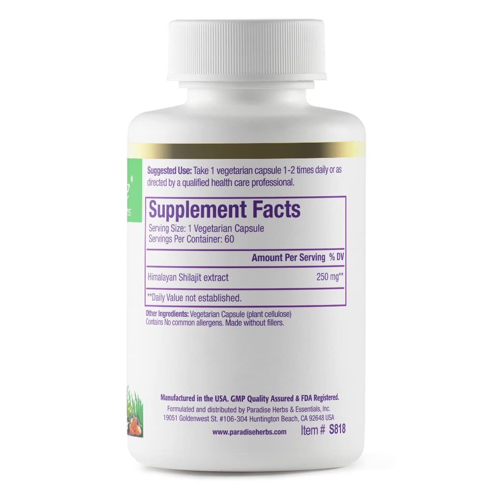 Pre-Order | Arrives in 5–10 Days – Paradise Herbs Shilajit Extract, Whole Active Plant Extract, Super Potent, Ultra Pure, Vegan, Non-GMO, Gluten Free, Keto, 60 Count Vegetarian Capsules