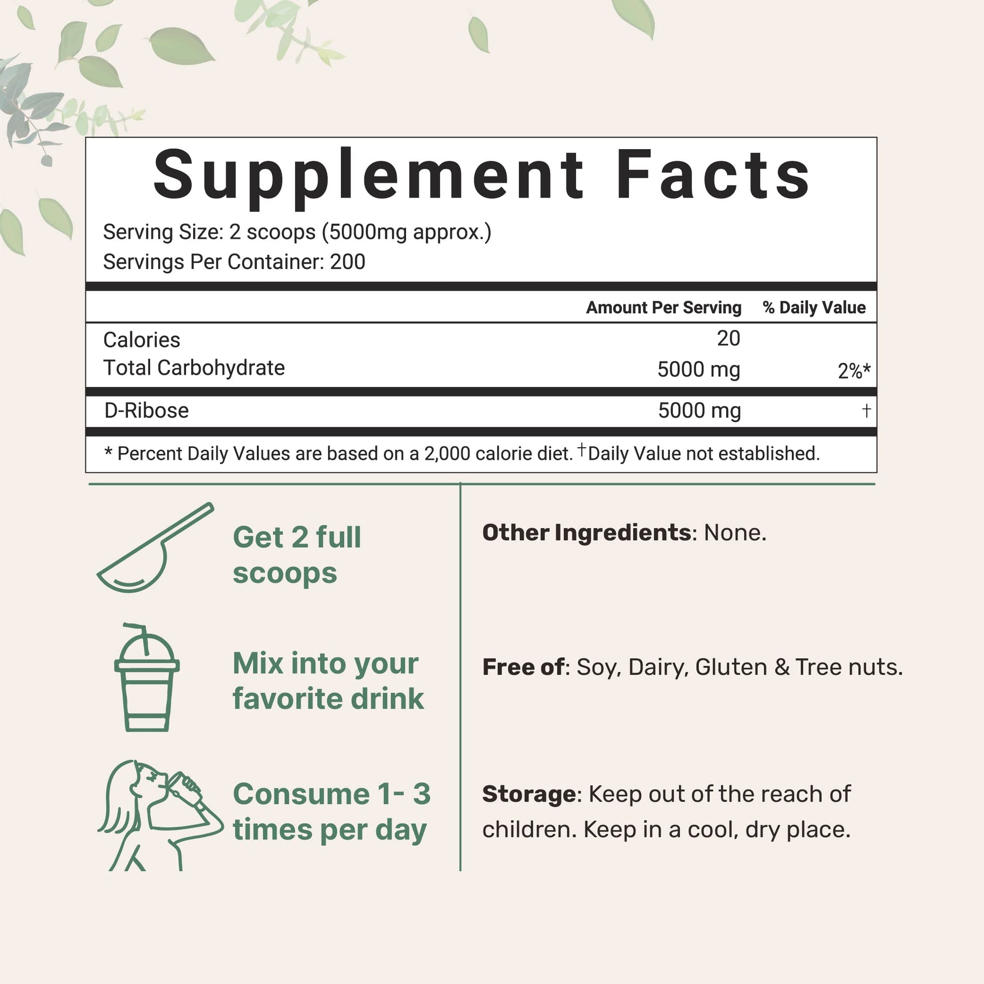 - Pure D Ribose Supplement (Powder Form), 35 Ounce (2.2 Pounds), No GMOs and No Gluten.