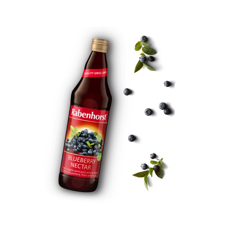 Fruity organic Blueberry nectar with at least 70 % fruit content Our nectar made from selected, wild-growing forest blueberries in organic quality offers a wide range of flavours and an excellent aroma. For our Blueberry nectar, we use only high-quality ingredients that are gently processed in our own press house to produce a nectar with a particularly high fruit content. This ensures a special quality that you can taste.